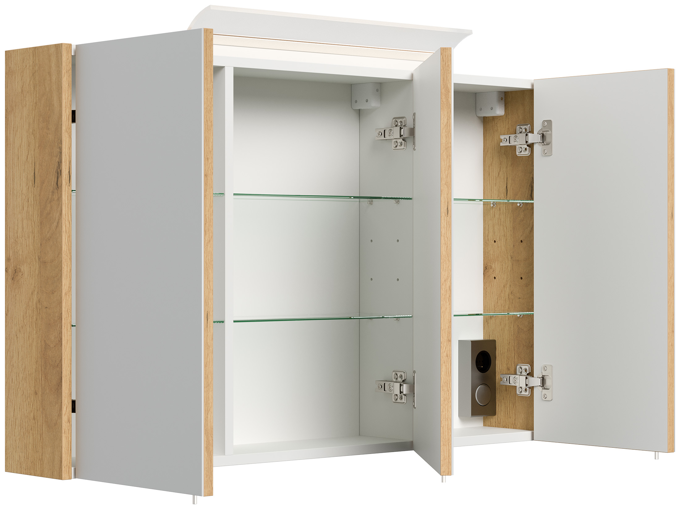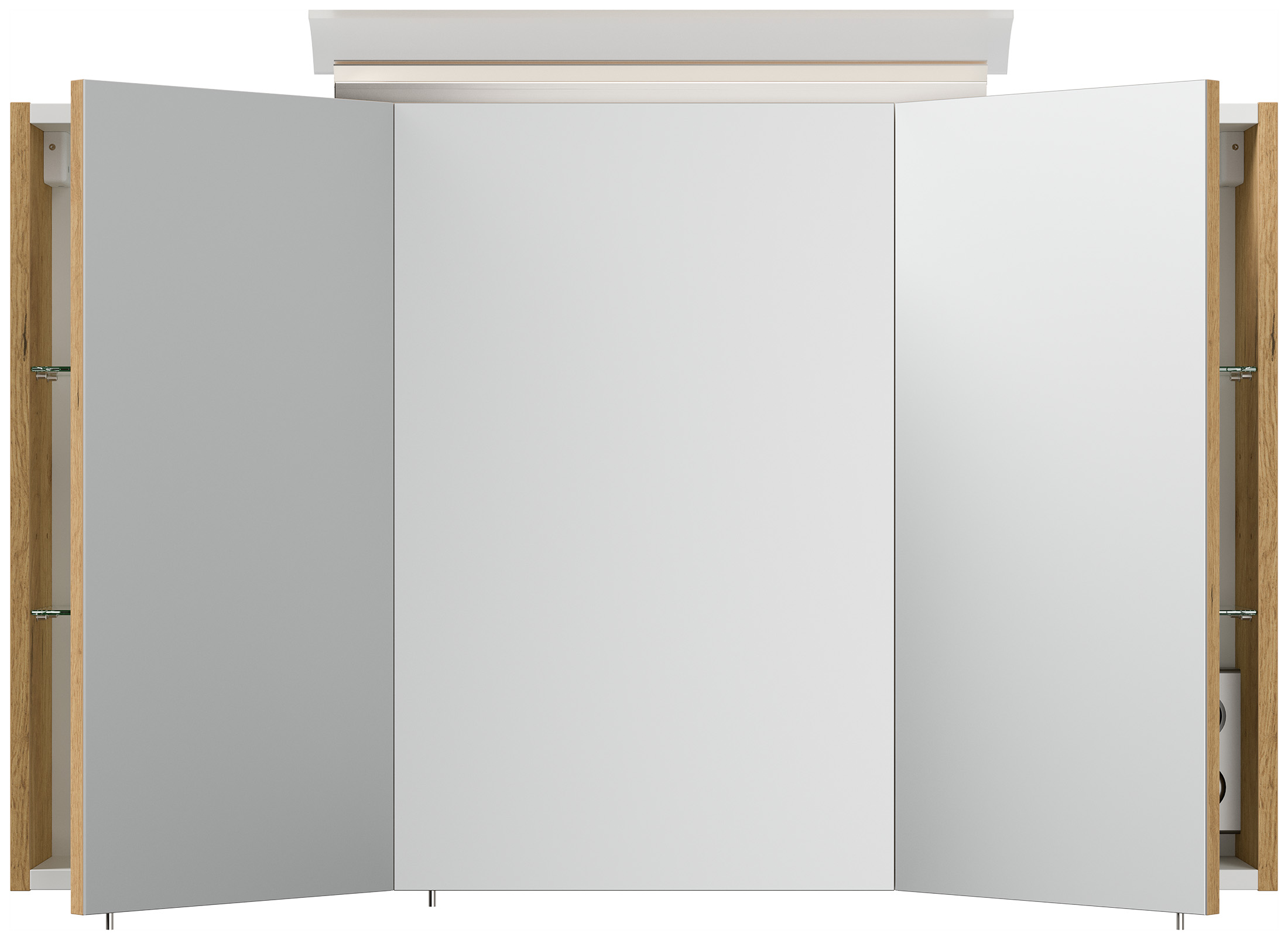 Spiegelschrank 120cm inkl. Design LED-Lampe und Glasböden eiche gold