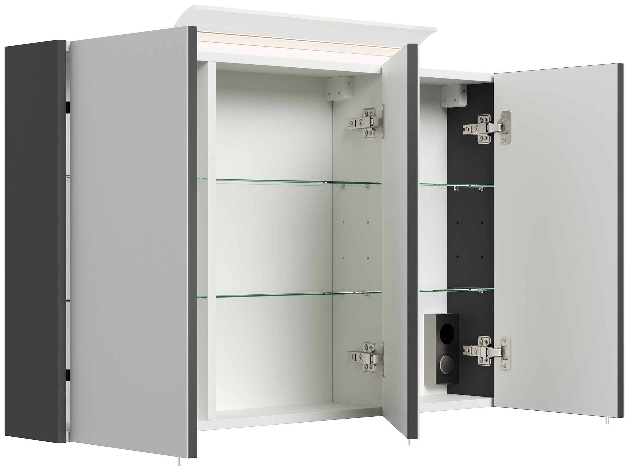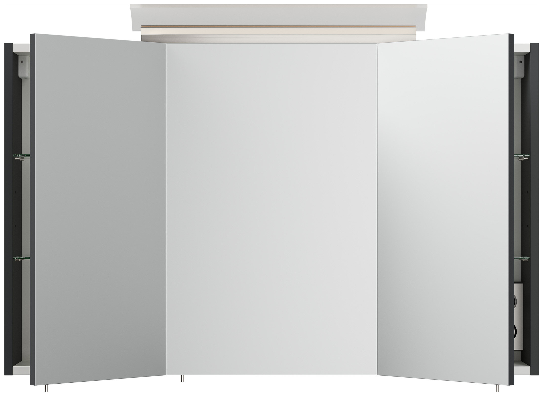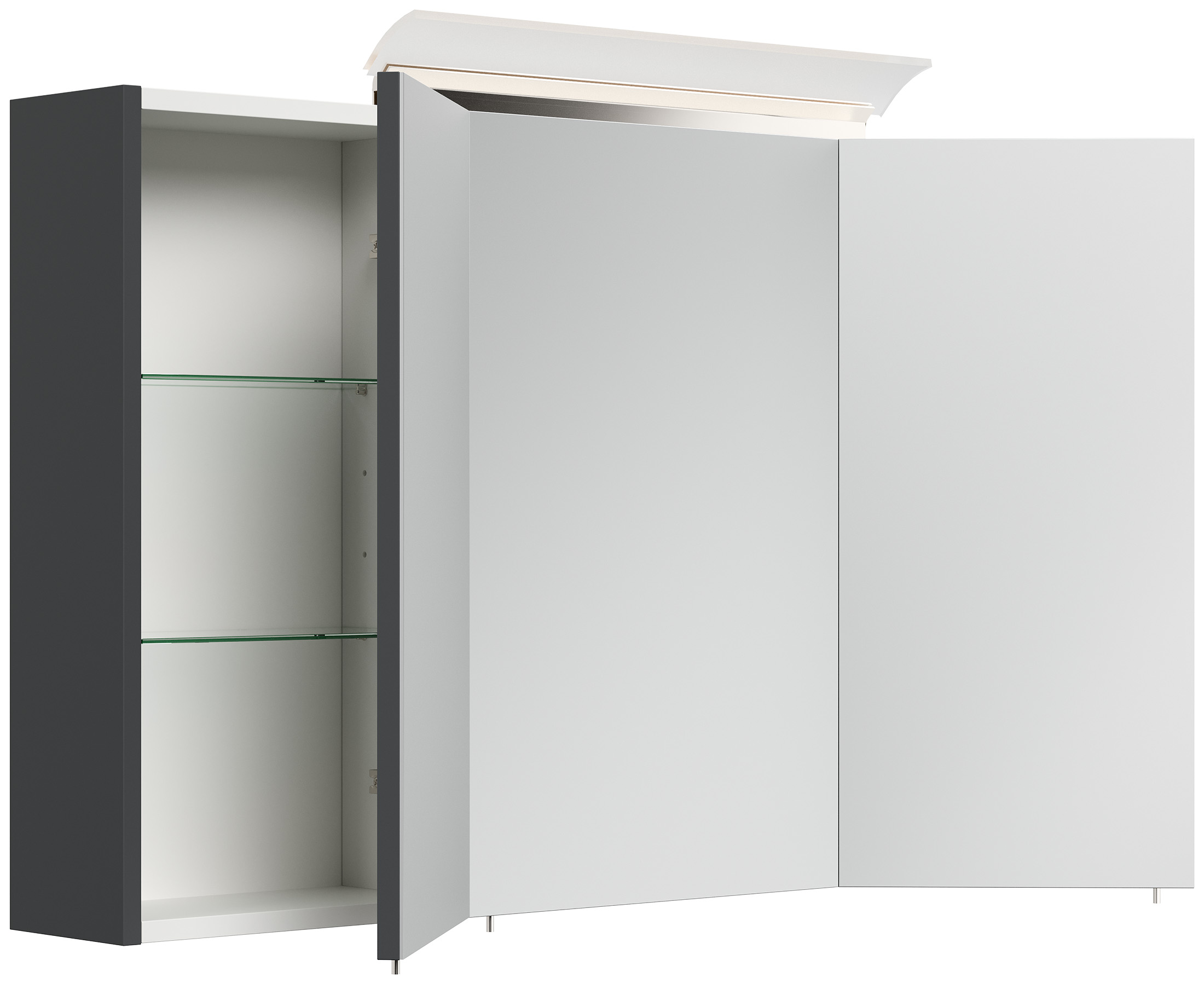 Spiegelschrank 120cm inkl. Design LED-Lampe und Glasböden grafit