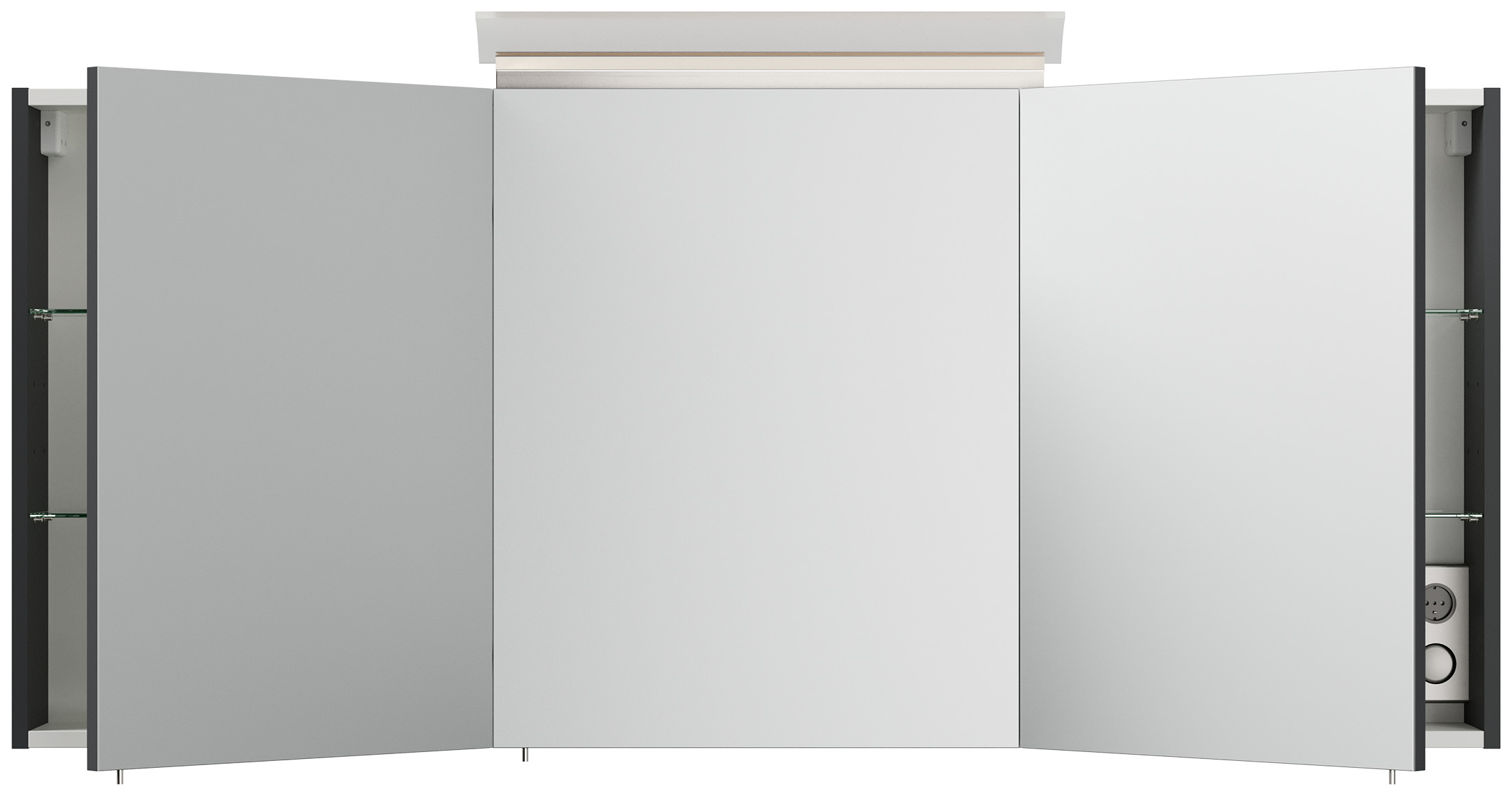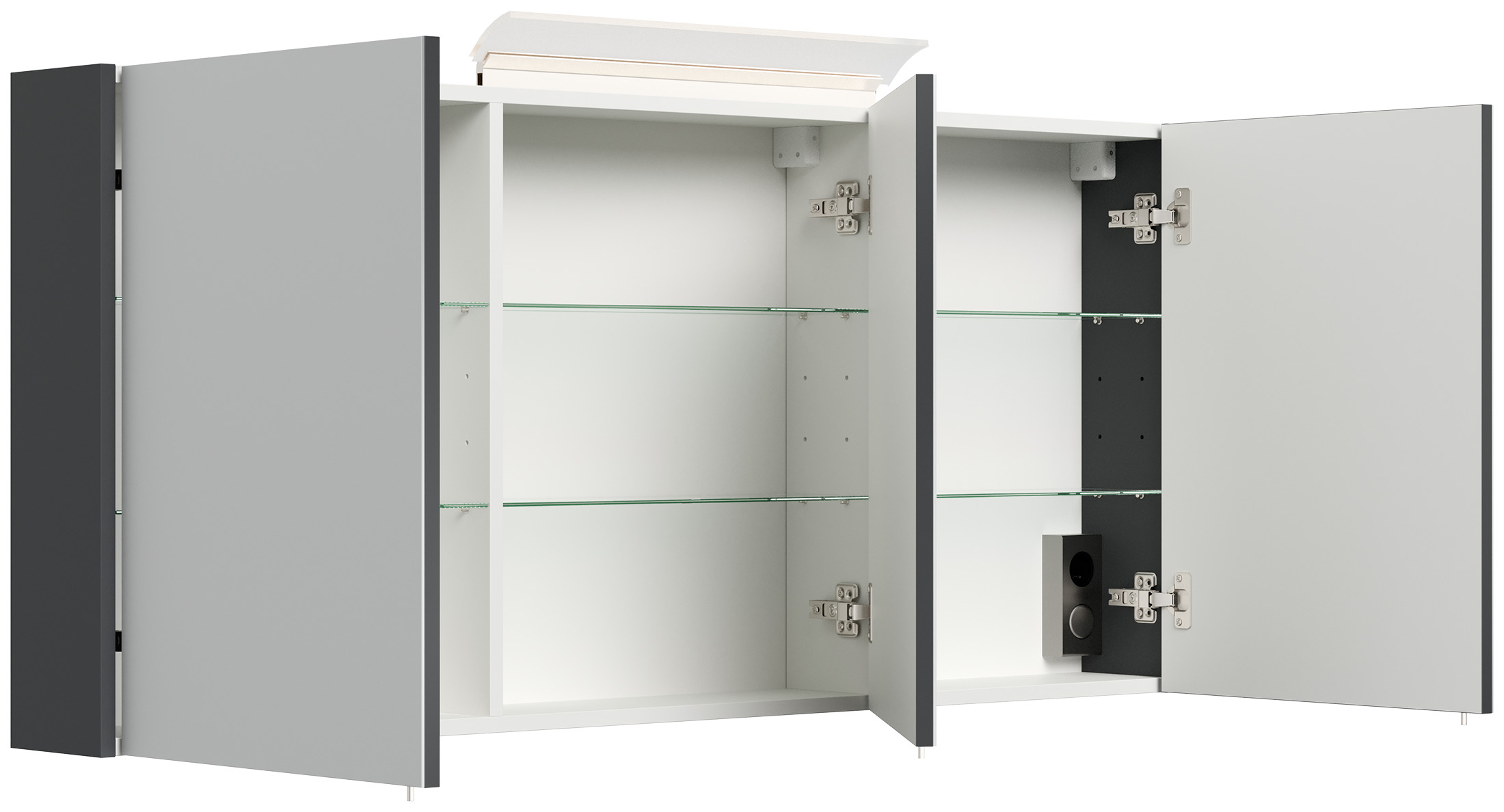 Spiegelschrank 140cm inkl. Design LED-Lampe und Glasböden grafit