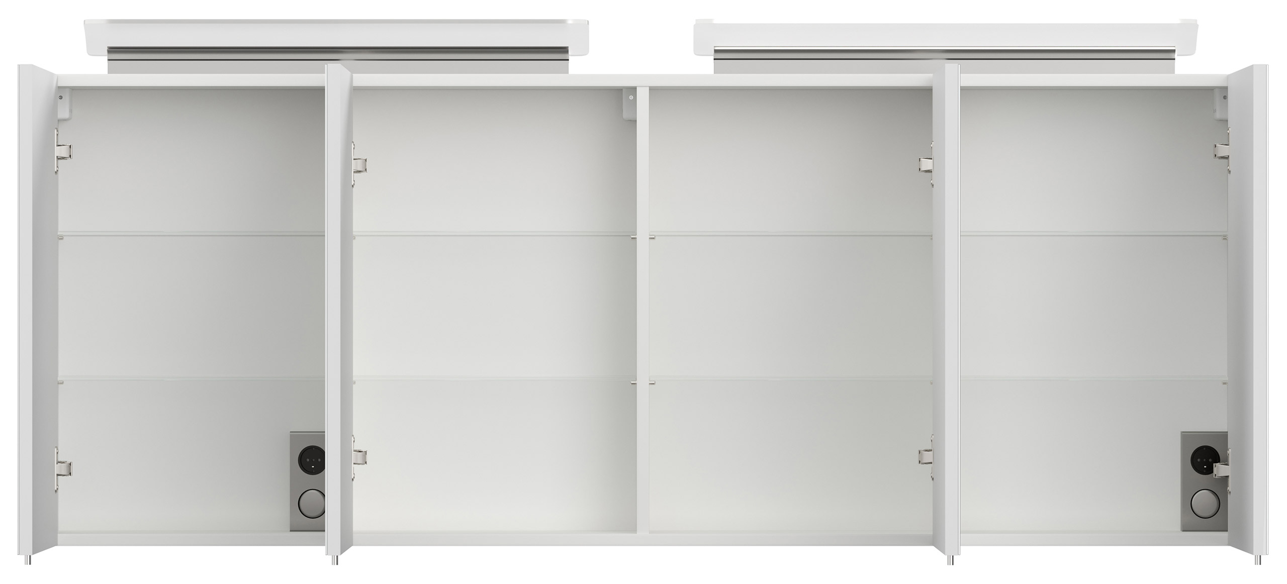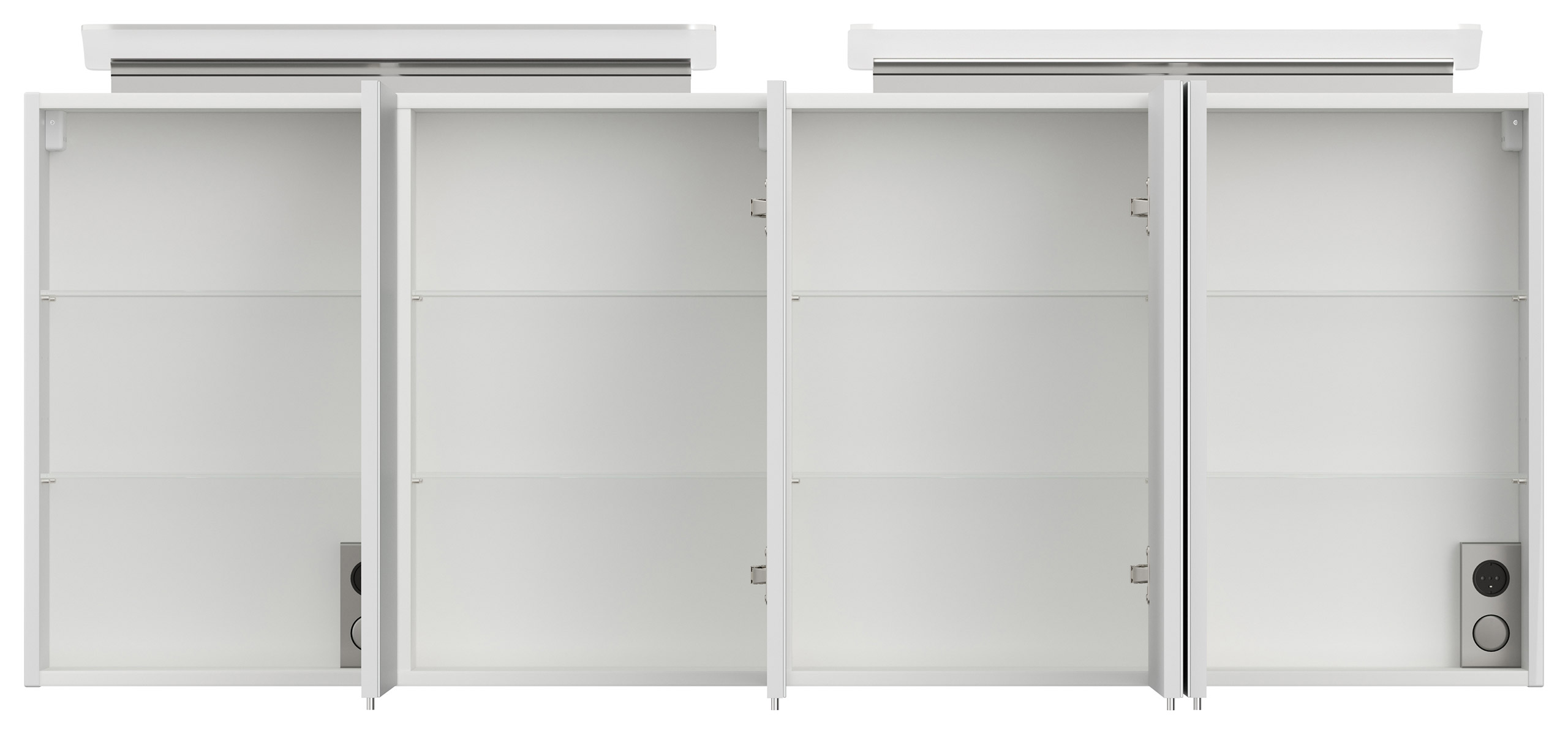 Spiegelschrank 160, inkl. Soft-Close-Türen mit Spiegel, 6 Regalböden aus Glas, Kombibox im Spiegelschrank mit Lichtschalter und Steckdose (B/H/T) 158,8/62,2 /17 cm.