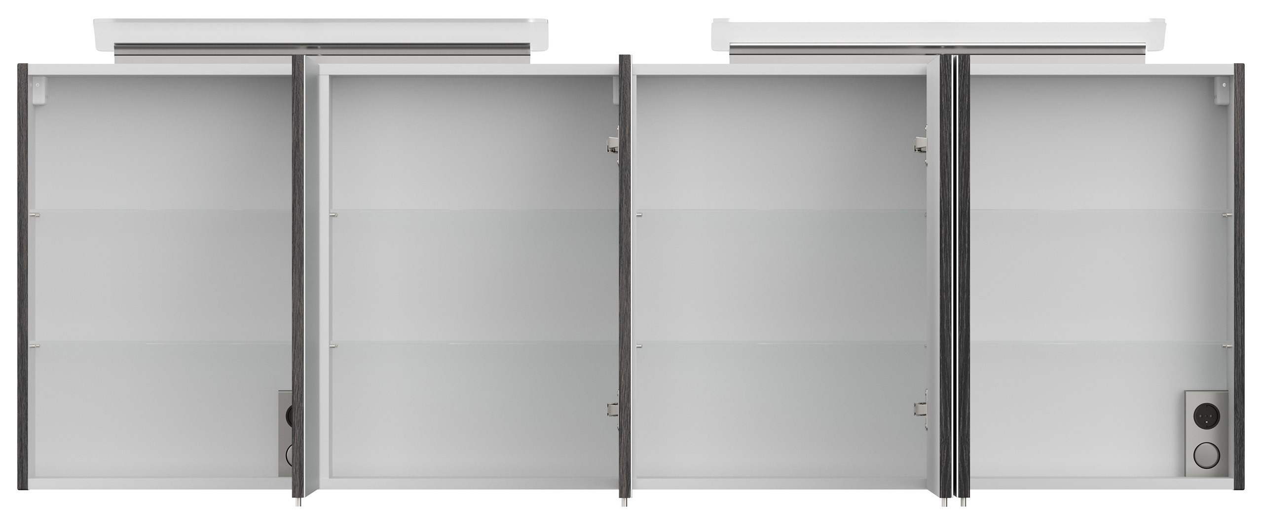 Spiegelschrank 180cm mit Acryl-Lampe und Glasböden Anthrazit gemasert
