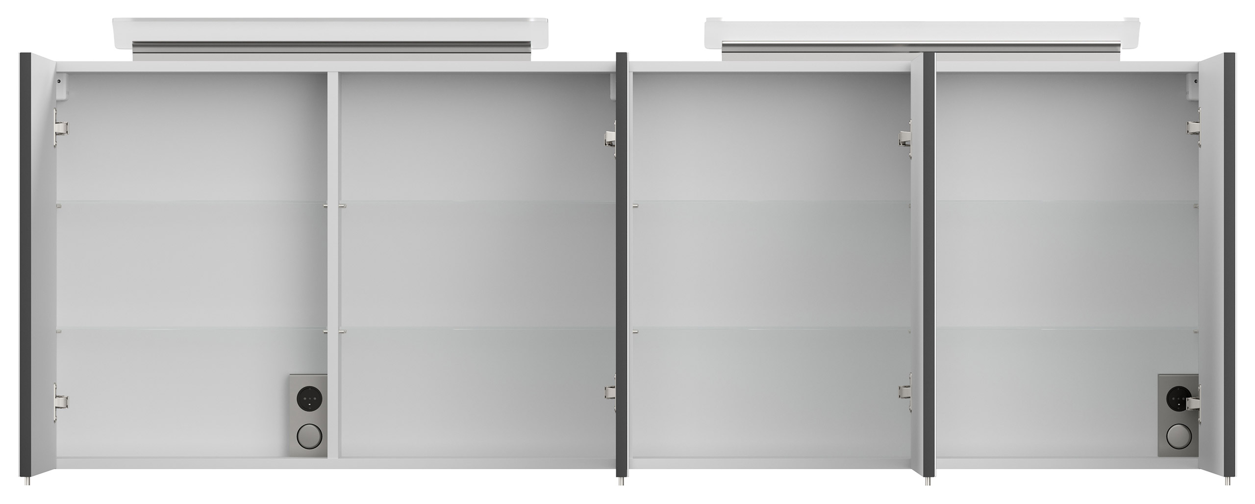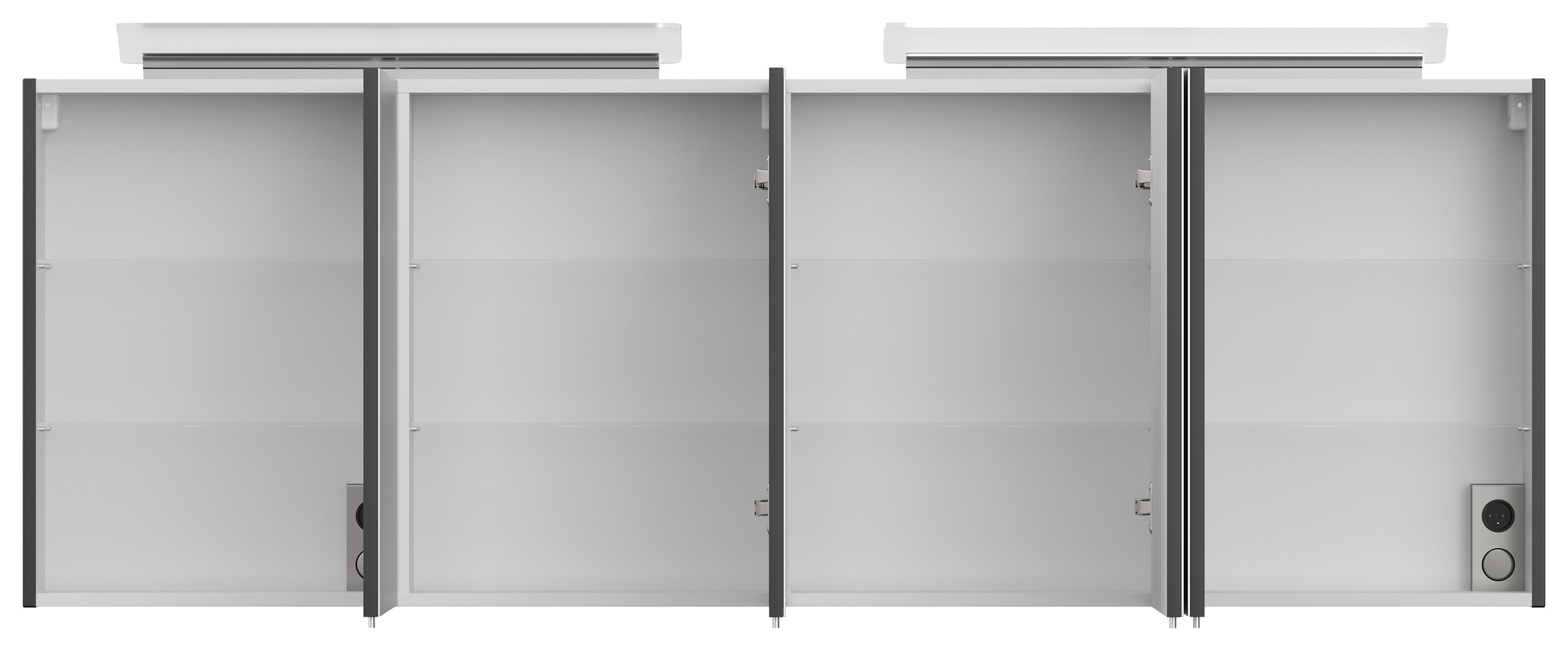 Spiegelschrank 180, inkl. Soft-Close-Türen mit Spiegel, 6 Regalböden aus Glas, Kombibox im Spiegelschrank mit Lichtschalter und Steckdose (B/H/T) 180/62,2 /17 cm.