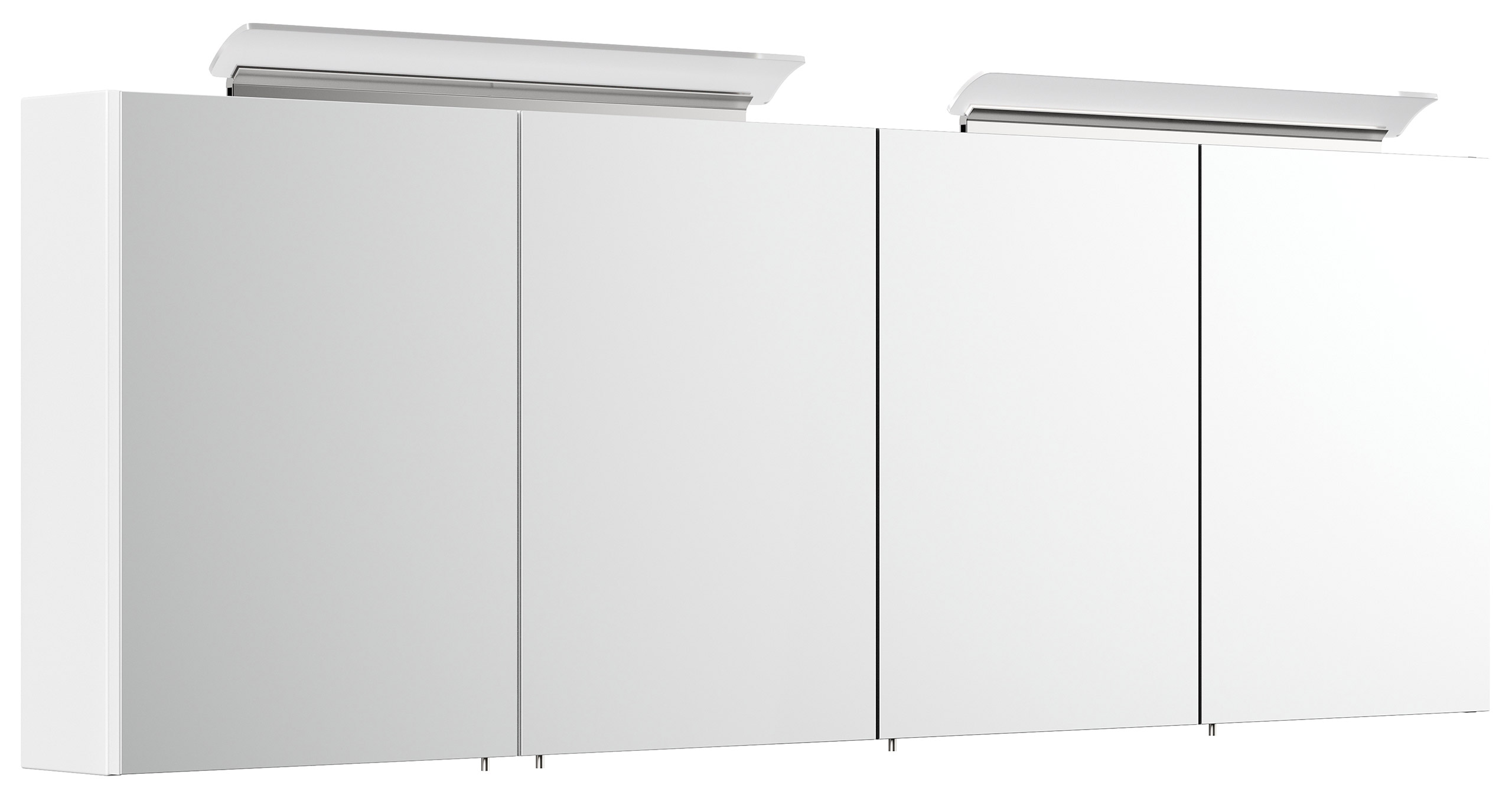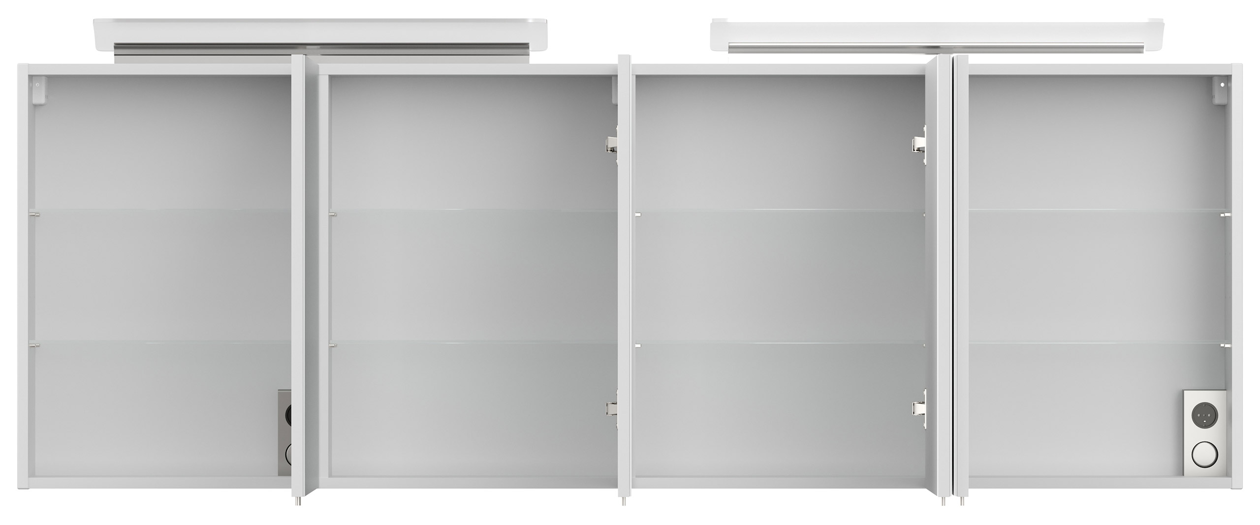 Spiegelschrank 180cm mit Acryl-Lampe und Glasböden Weiss hochglanz