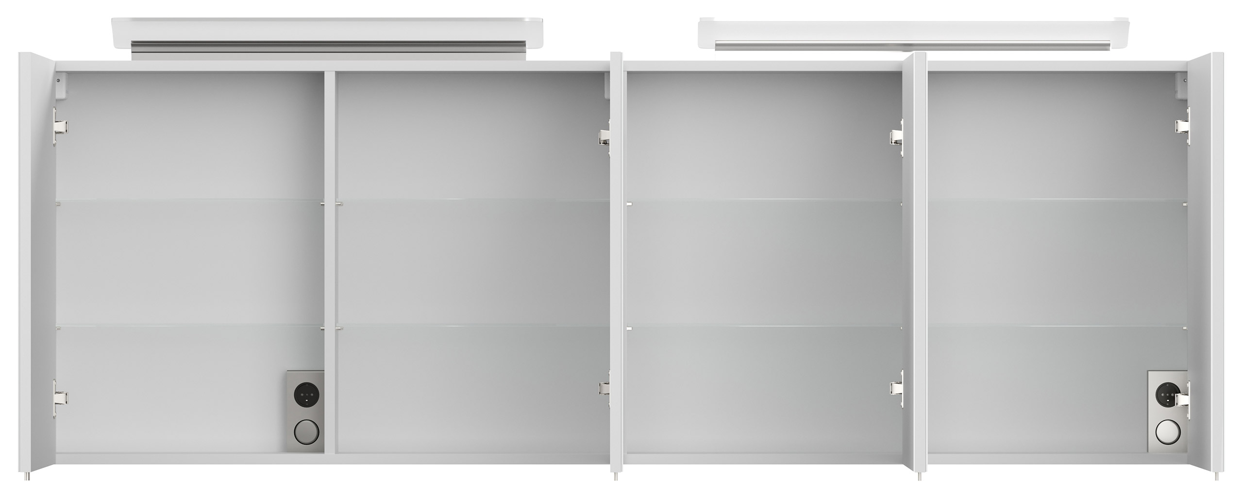 Spiegelschrank 180, inkl. Soft-Close-Türen mit Spiegel, 6 Regalböden aus Glas, Kombibox im Spiegelschrank mit Lichtschalter und Steckdose (B/H/T) 180/62,2 /17 cm.