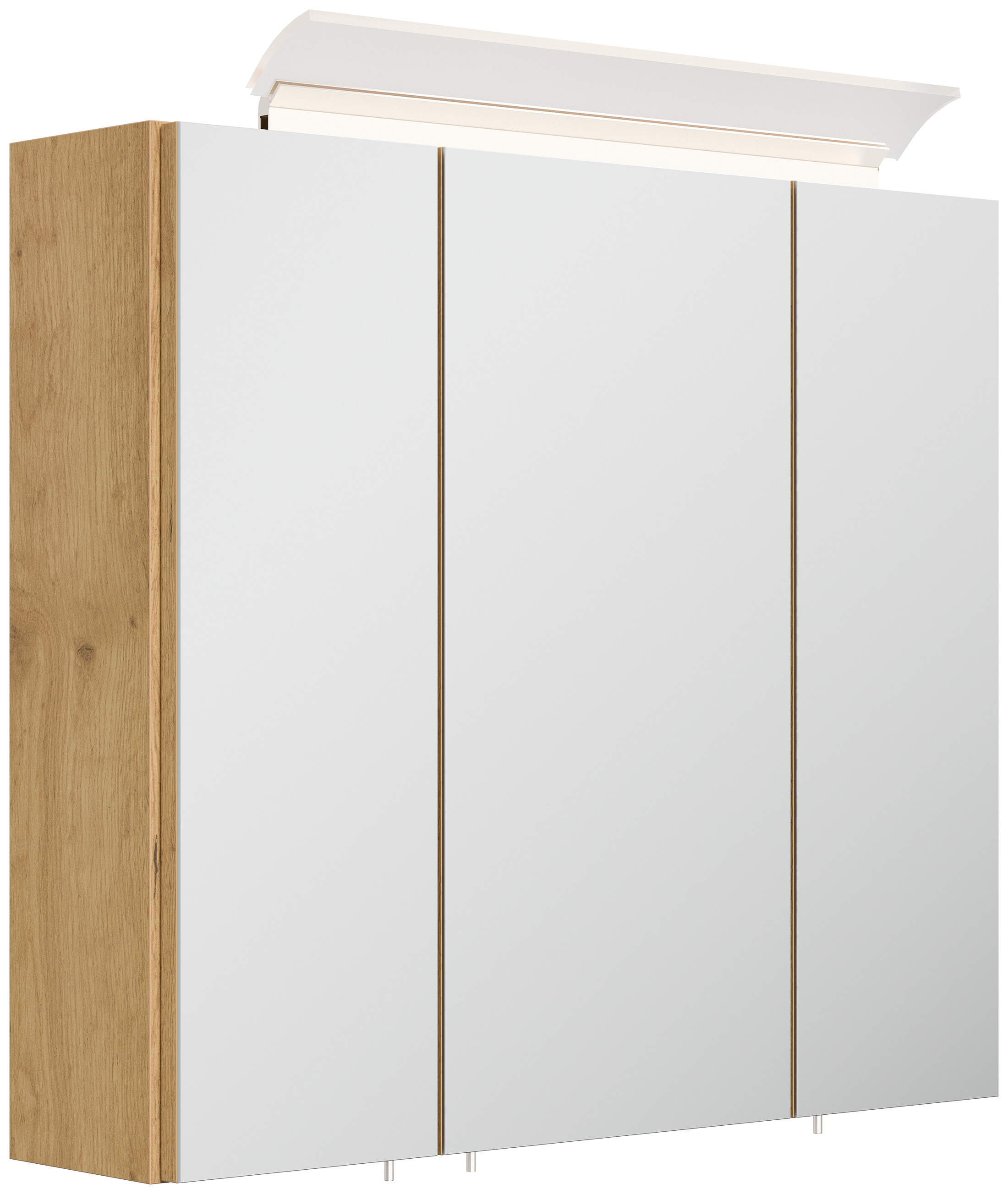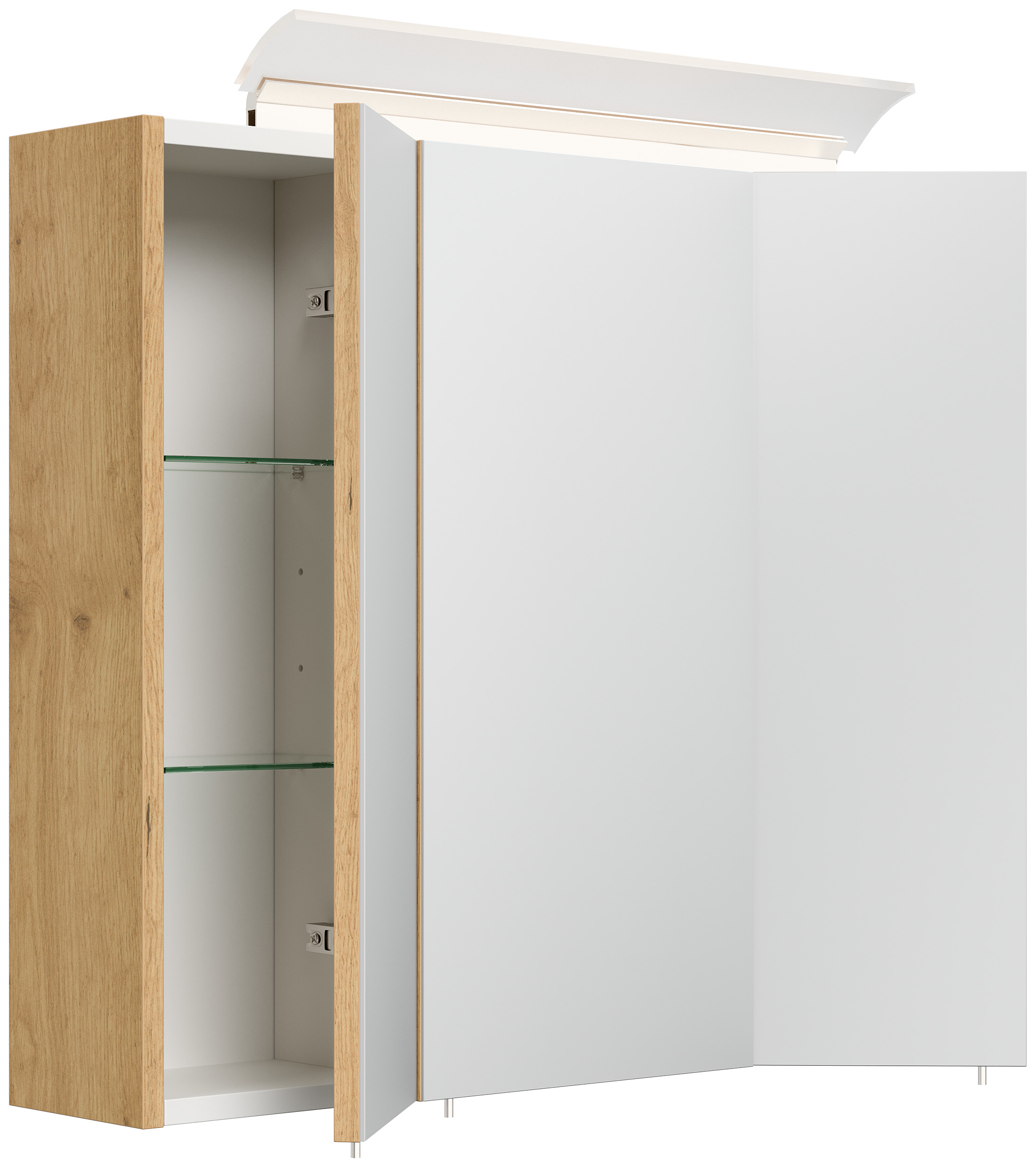 Spiegelschrank 70cm inkl. Design LED-Lampe und Glasböden eiche gold