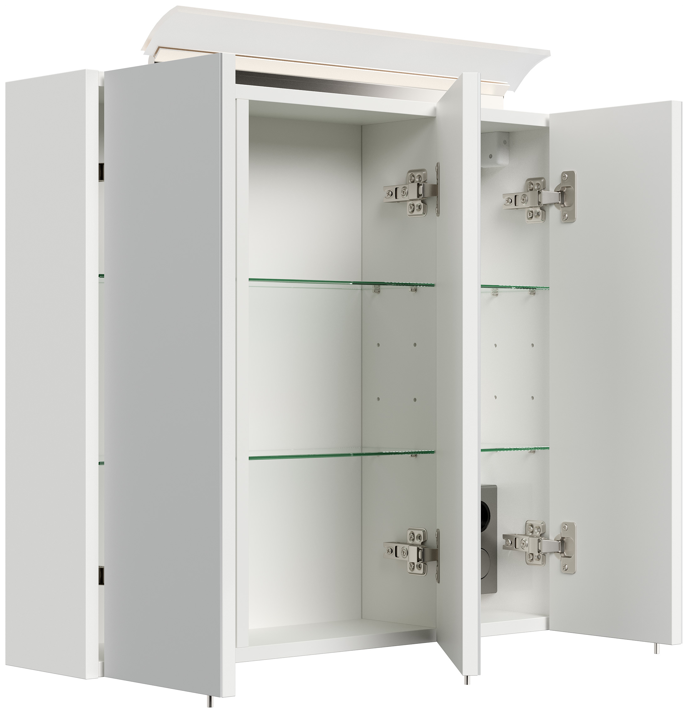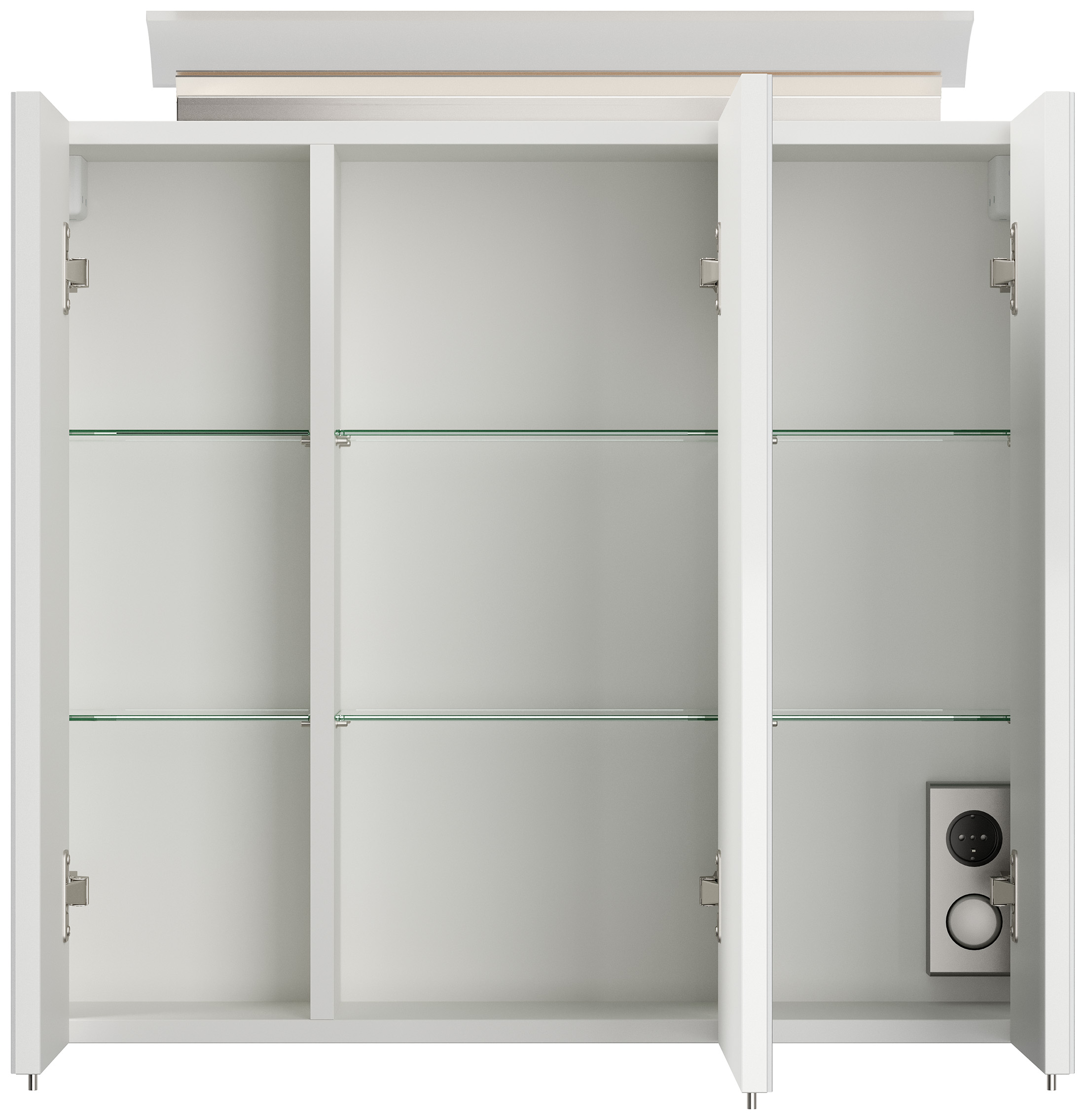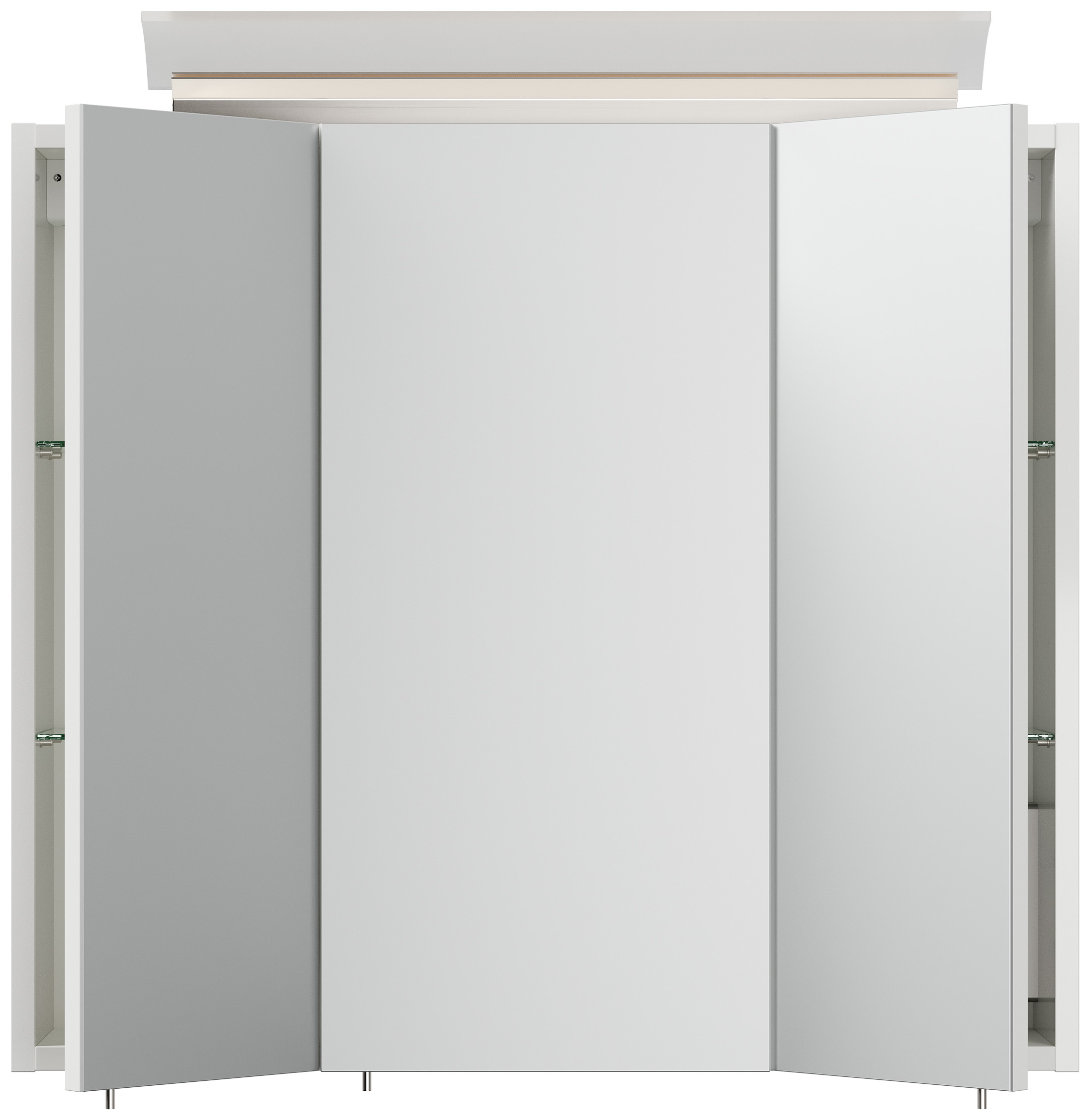 Spiegelschrank 70cm inkl. Design LED-Lampe und Glasböden weiss hochglanz