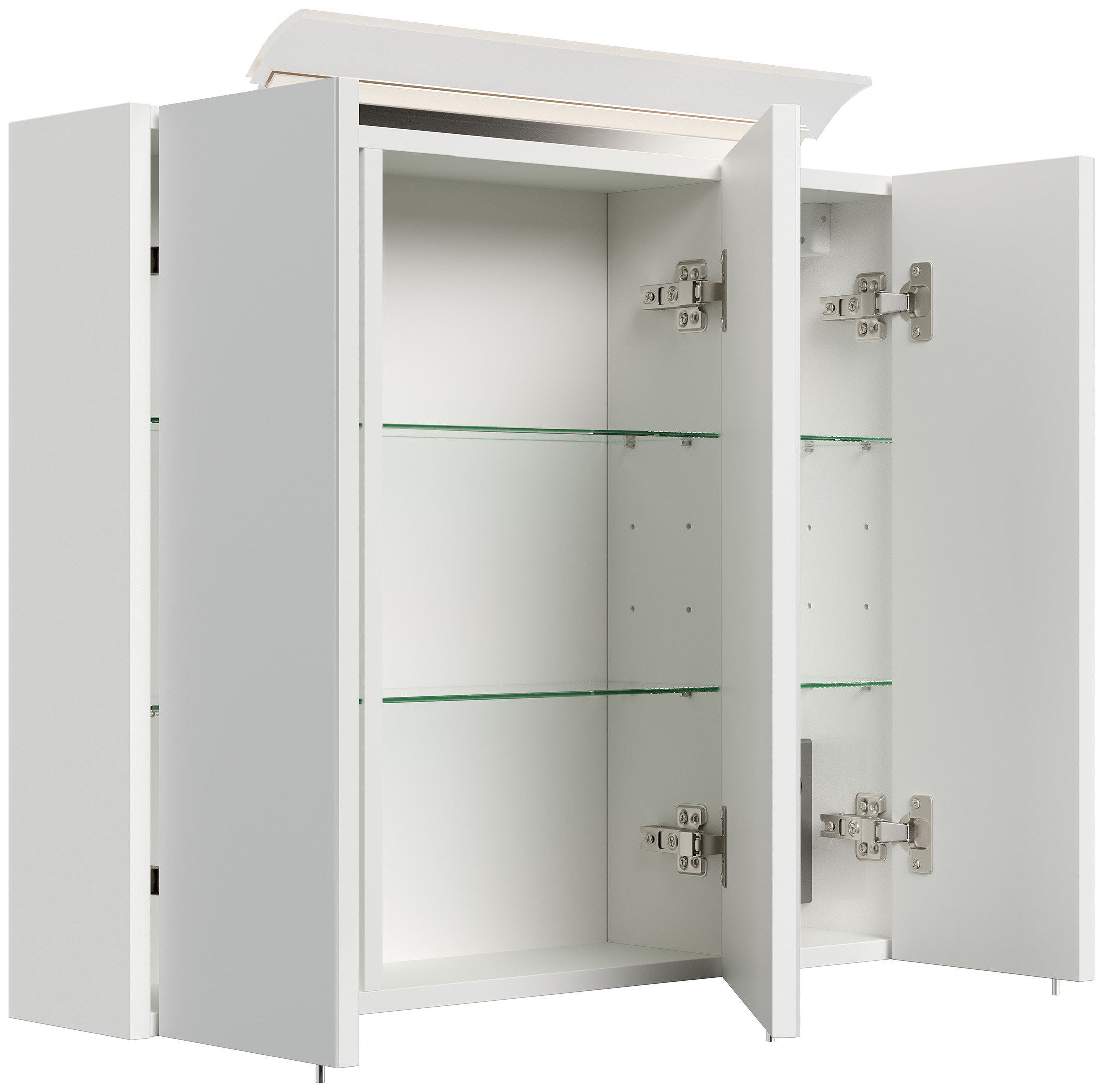 Spiegelschrank 75cm inkl. Design LED-Lampe und Glasböden weiss hochglanz