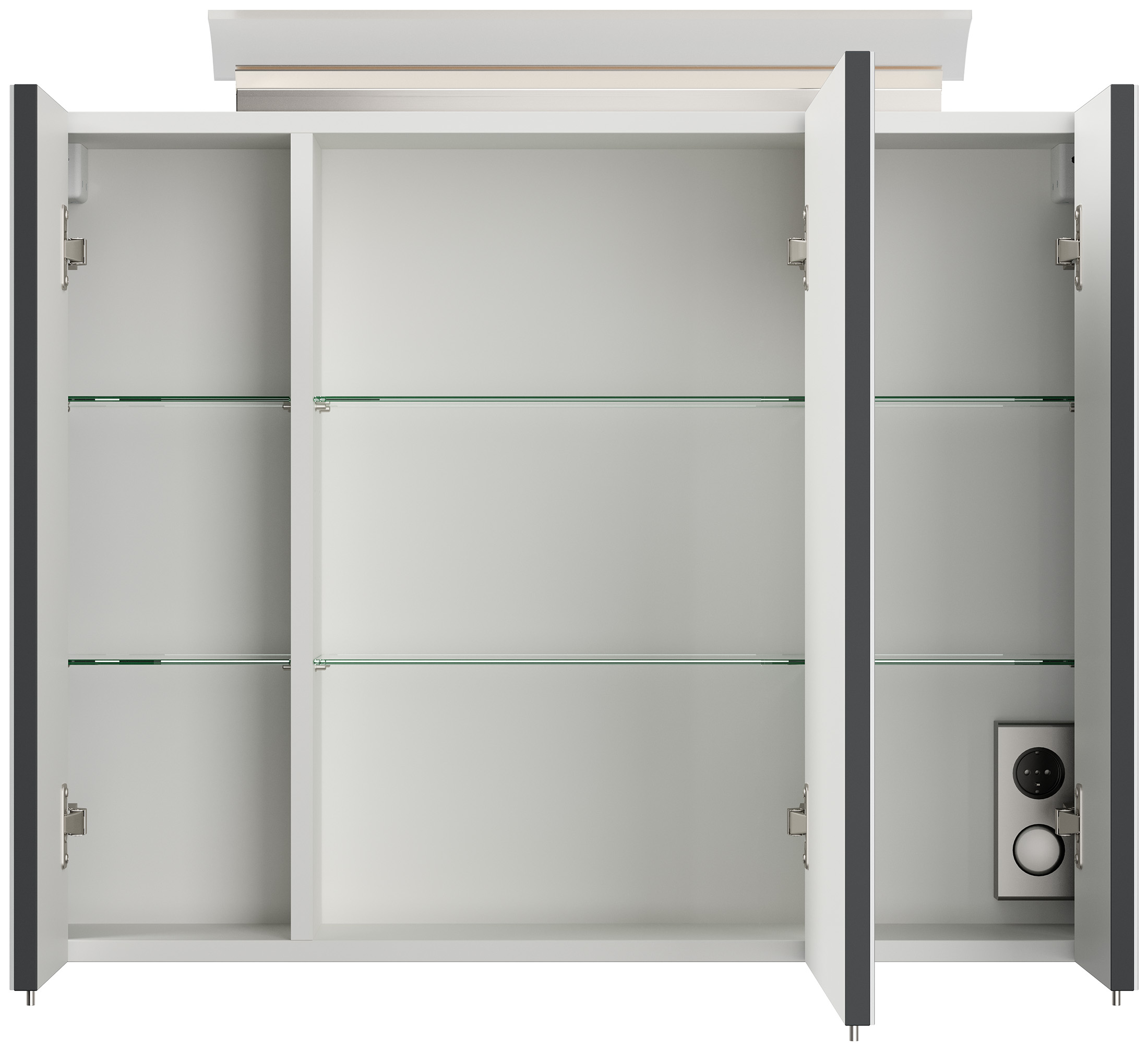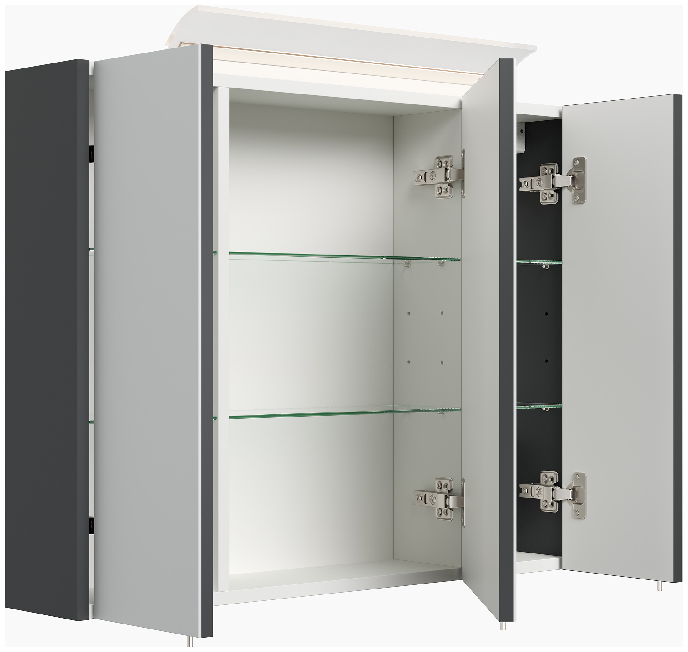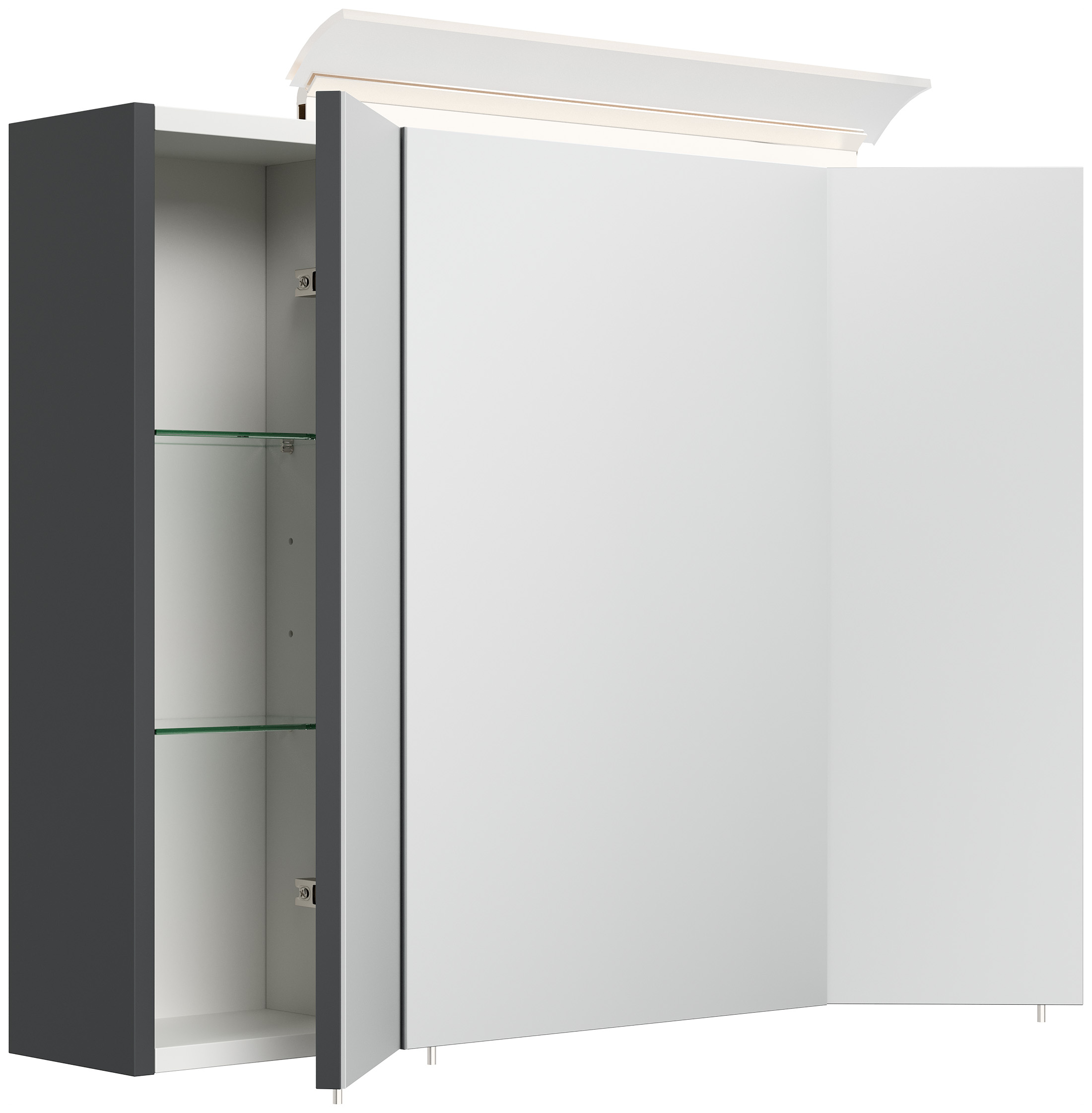 Spiegelschrank 80cm inkl. Design LED-Lampe und Glasböden grafit
