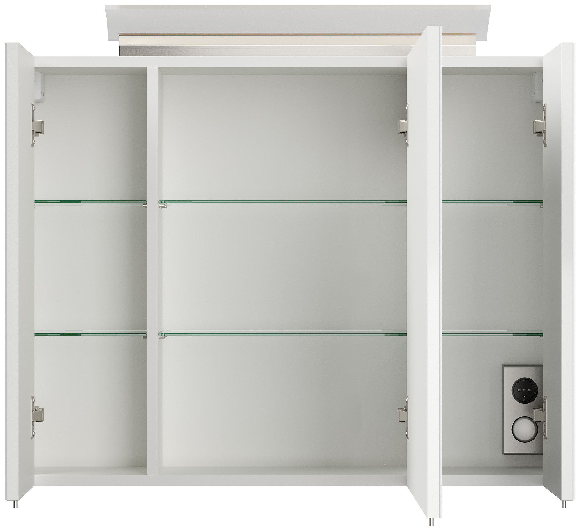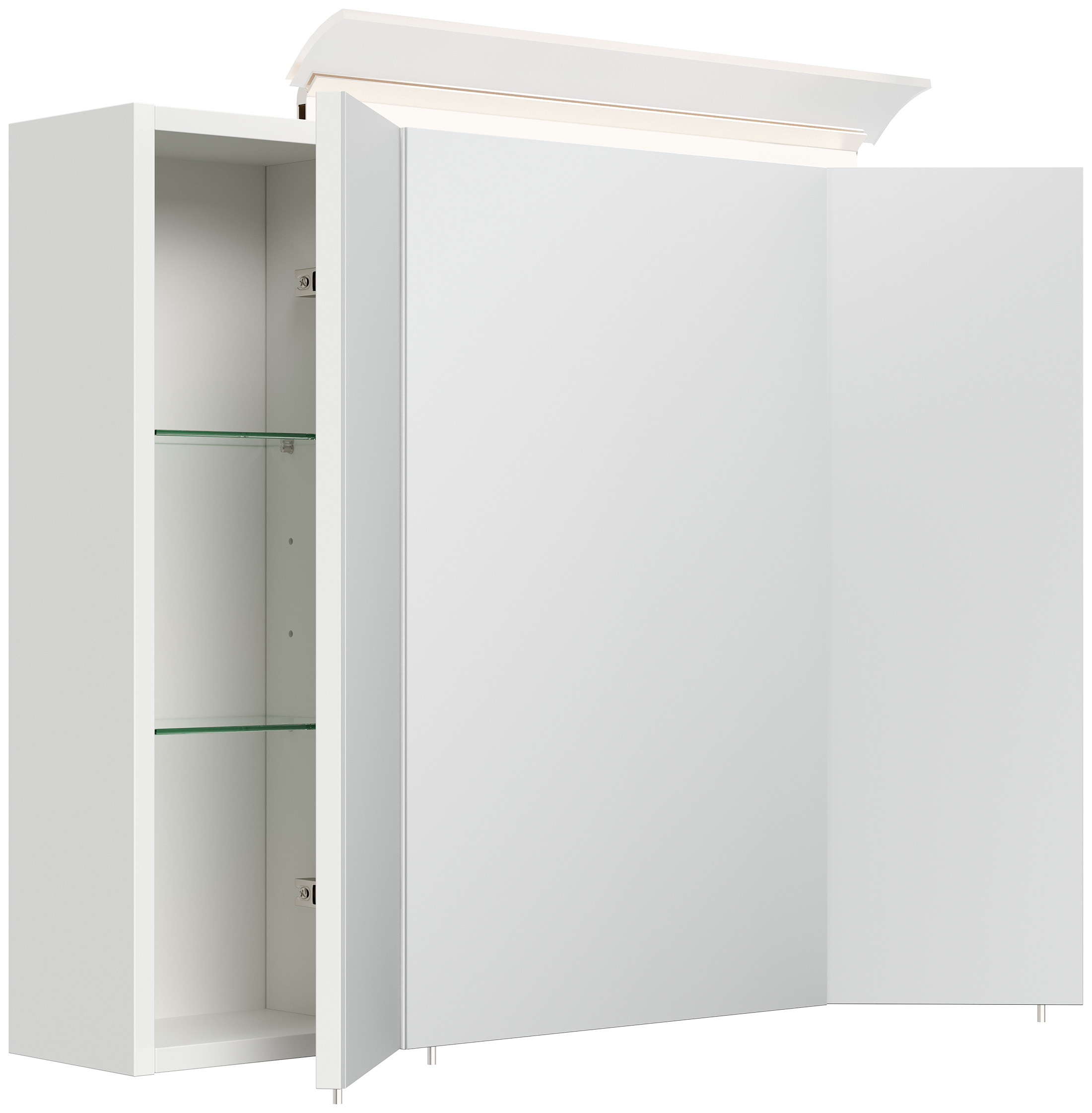 Spiegelschrank 80cm inkl. Design LED-Lampe und Glasböden weiss hochglanz