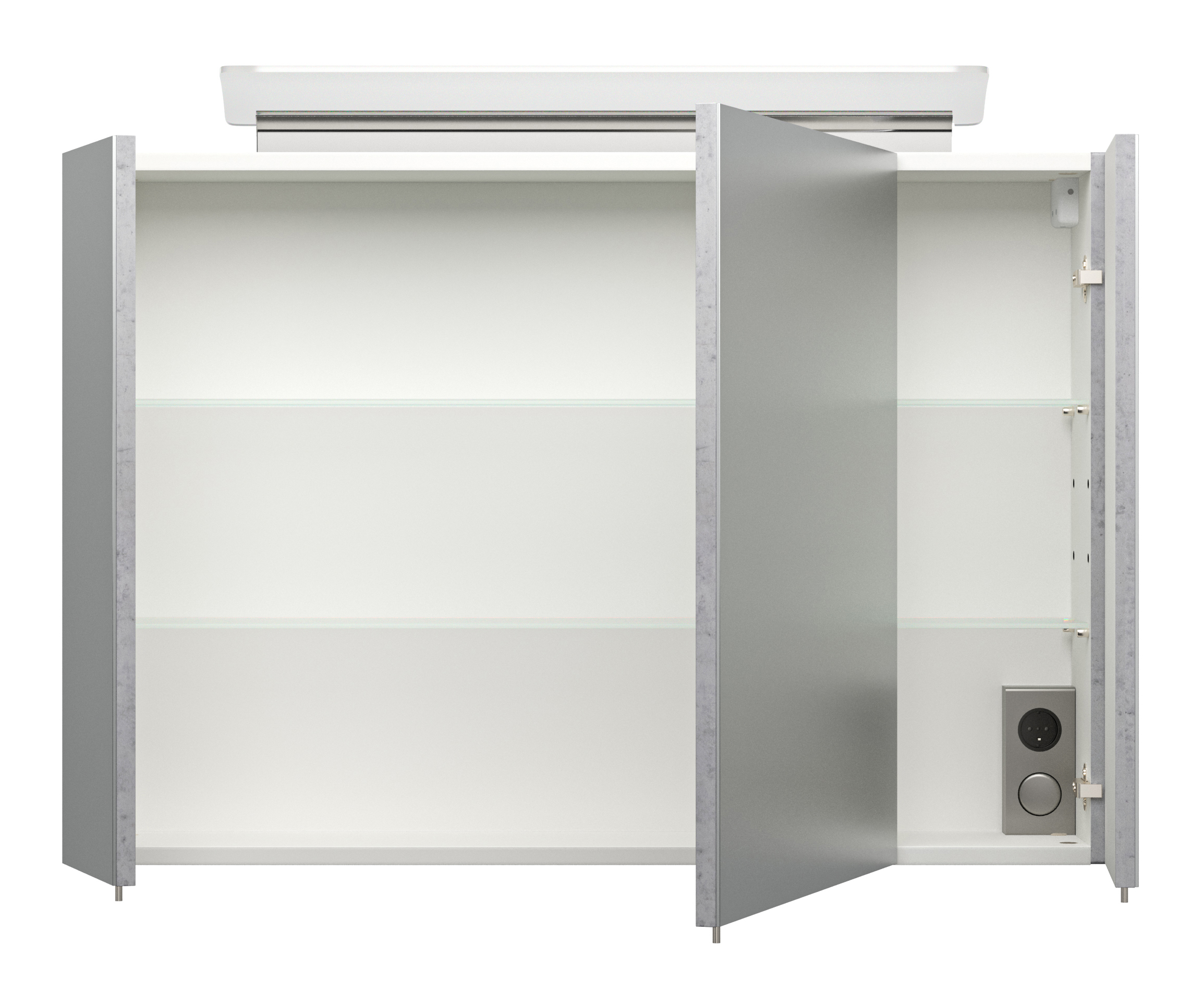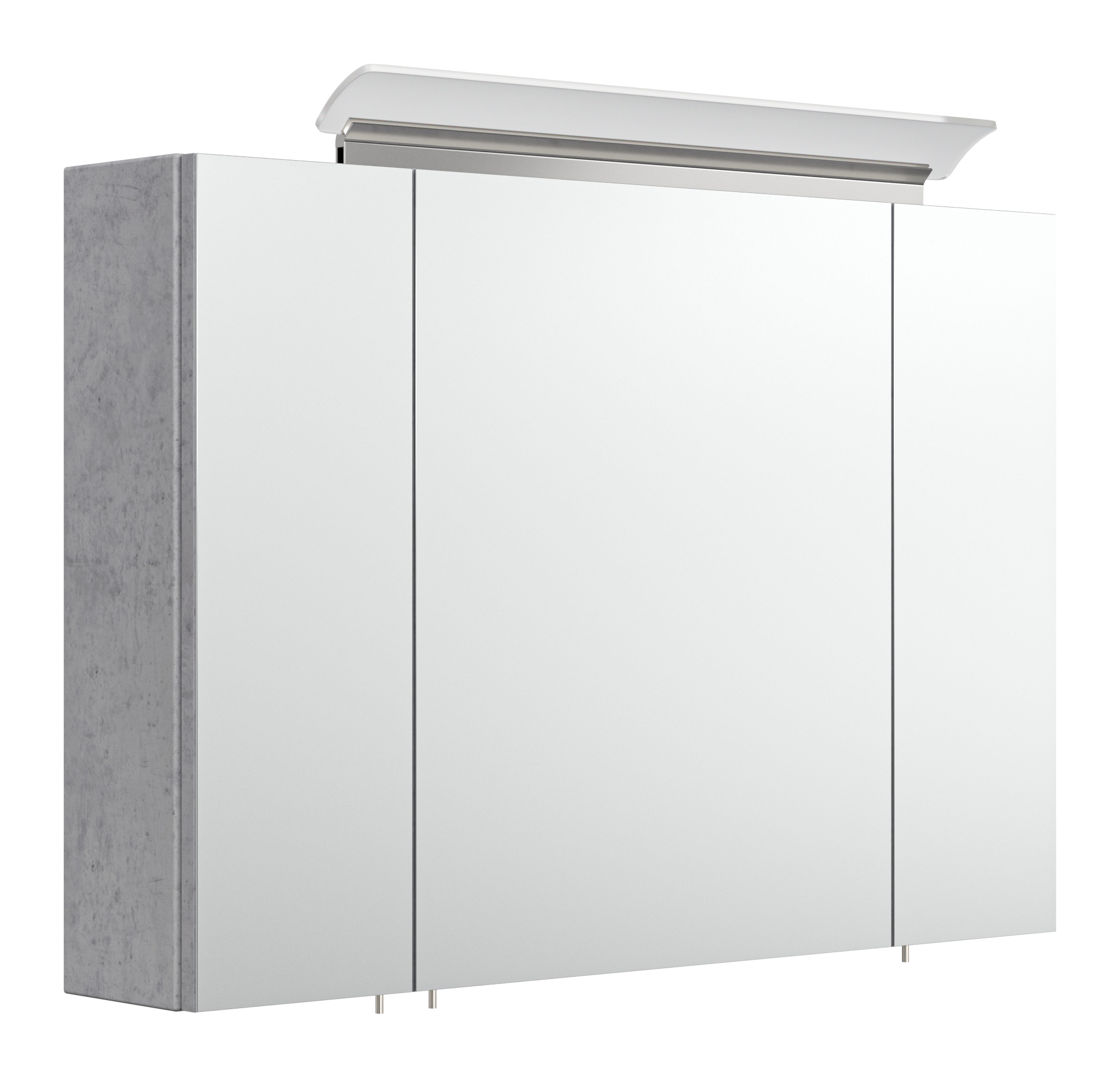 Spiegelschrank 90cm inkl. Design LED-Lampe und Glasböden beton