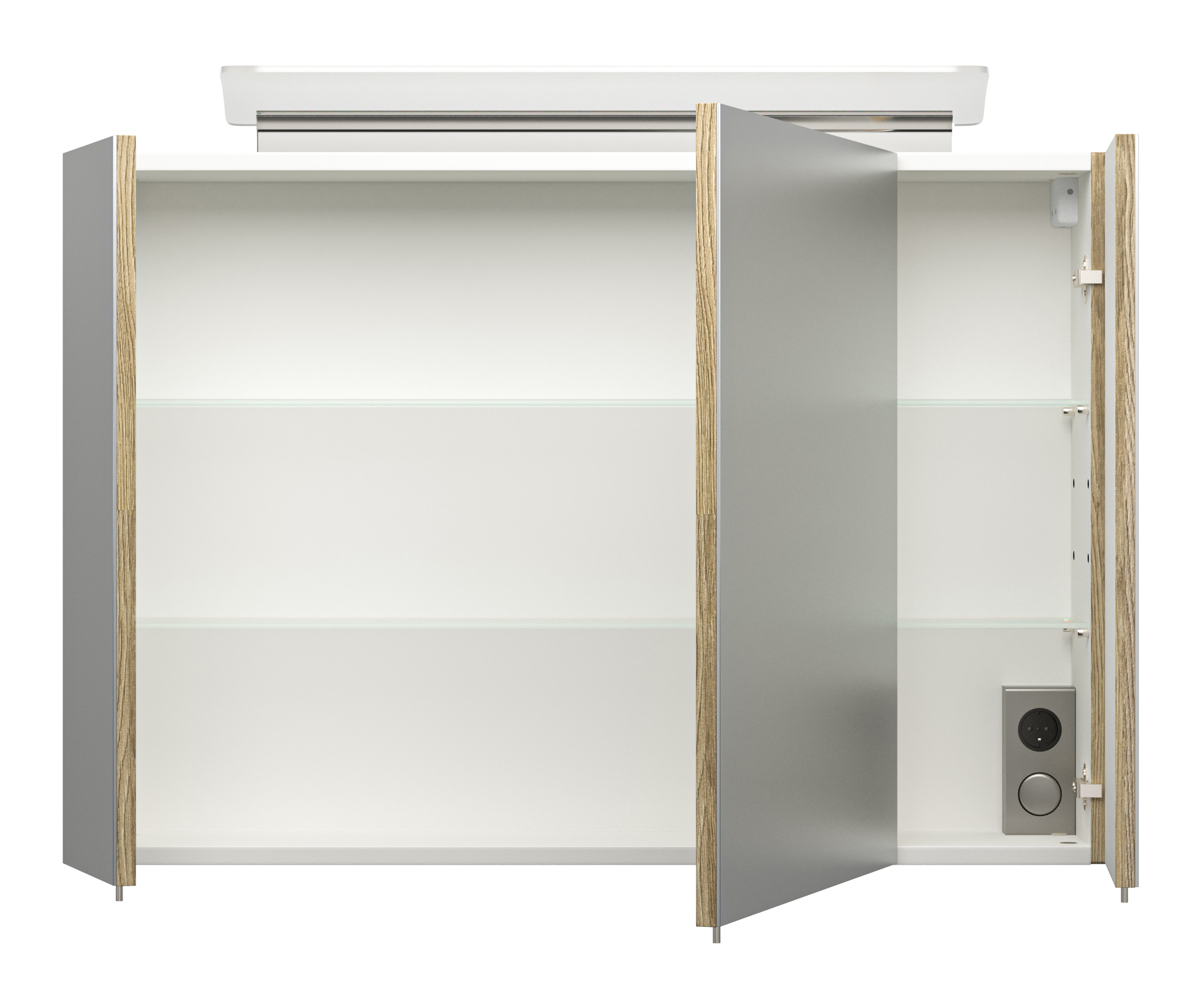 Spiegelschrank 90cm inkl. Design LED-Lampe und Glasböden eiche hell