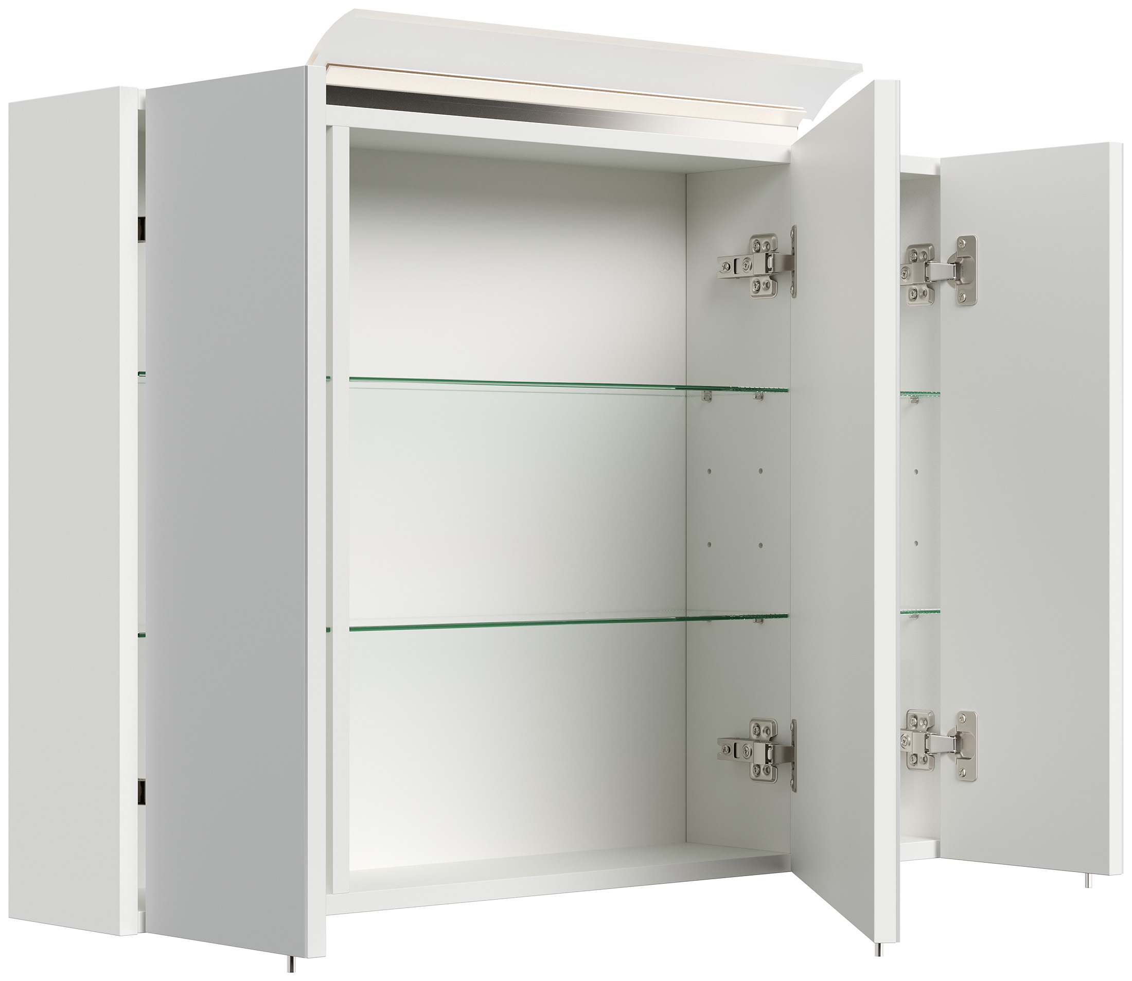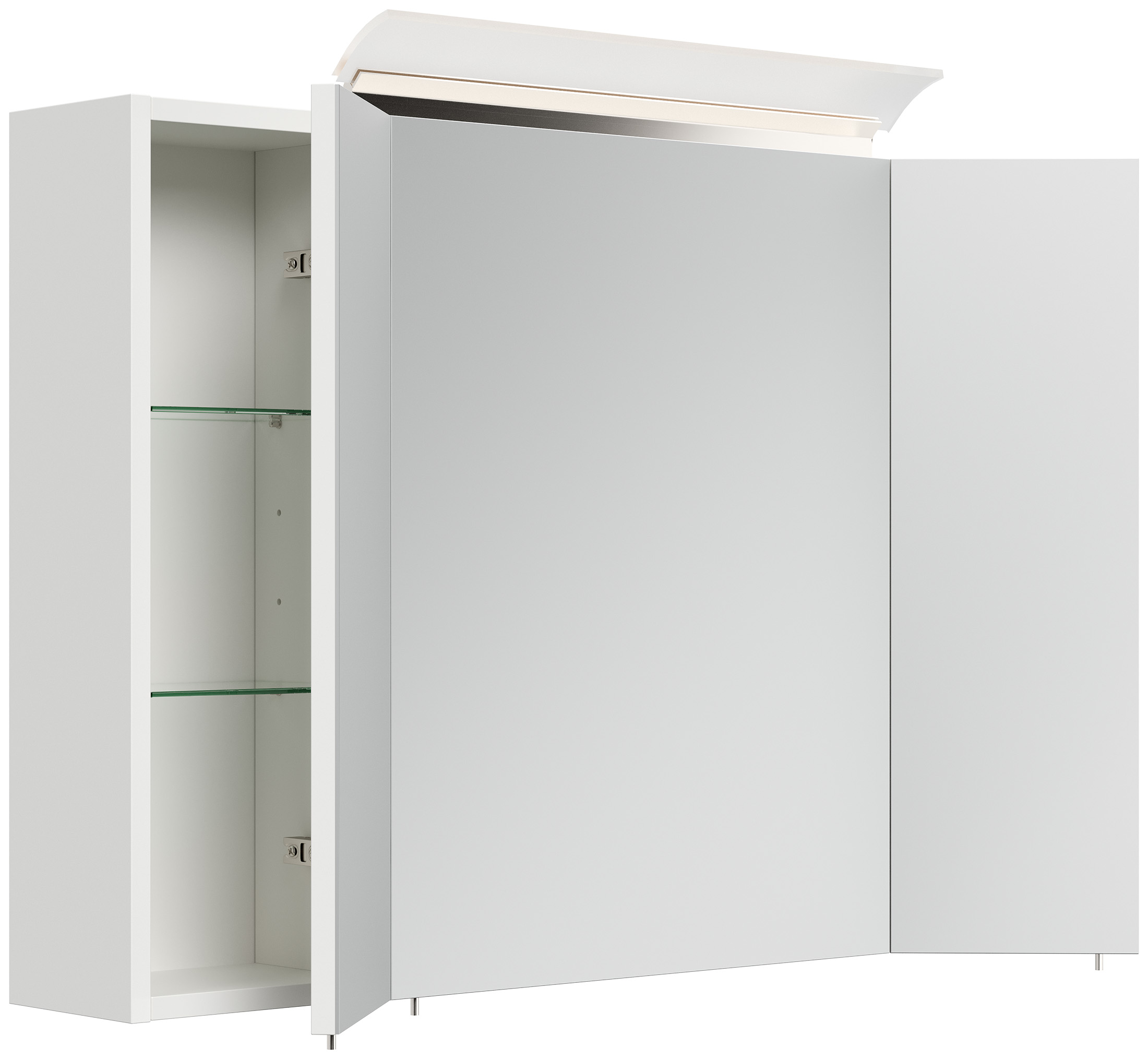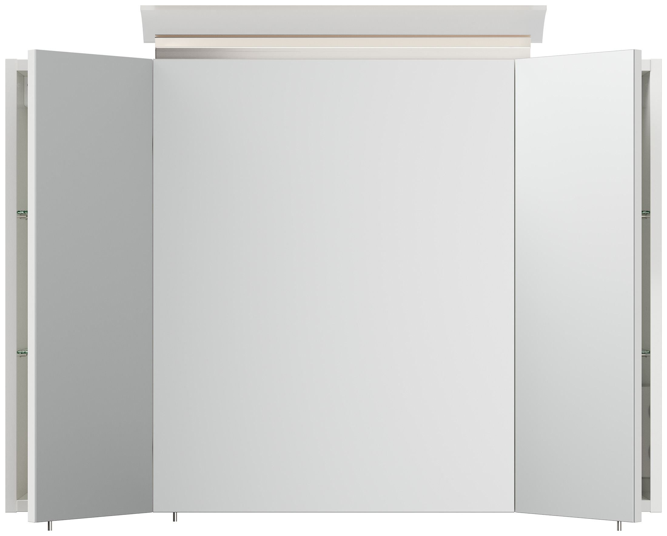 Spiegelschrank 90cm inkl. Design LED-Lampe und Glasböden weiss hochglanz