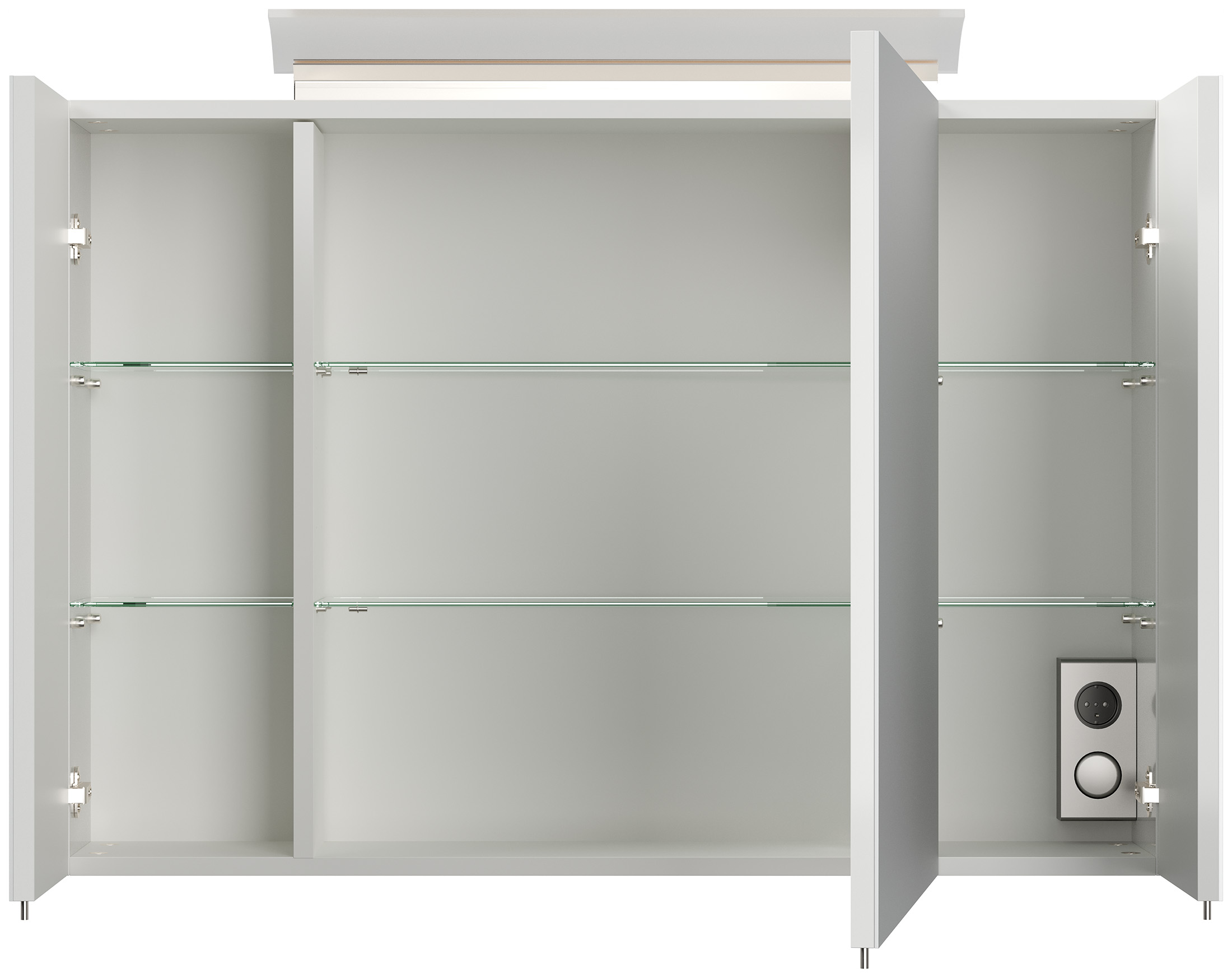 | Lieferumfang | 1x Spiegelschrank, LED-Acrylglaslampe auf Spiegelschrank, Kombibox im Spiegelschrank mit Lichtschalter und Stromanschluss |