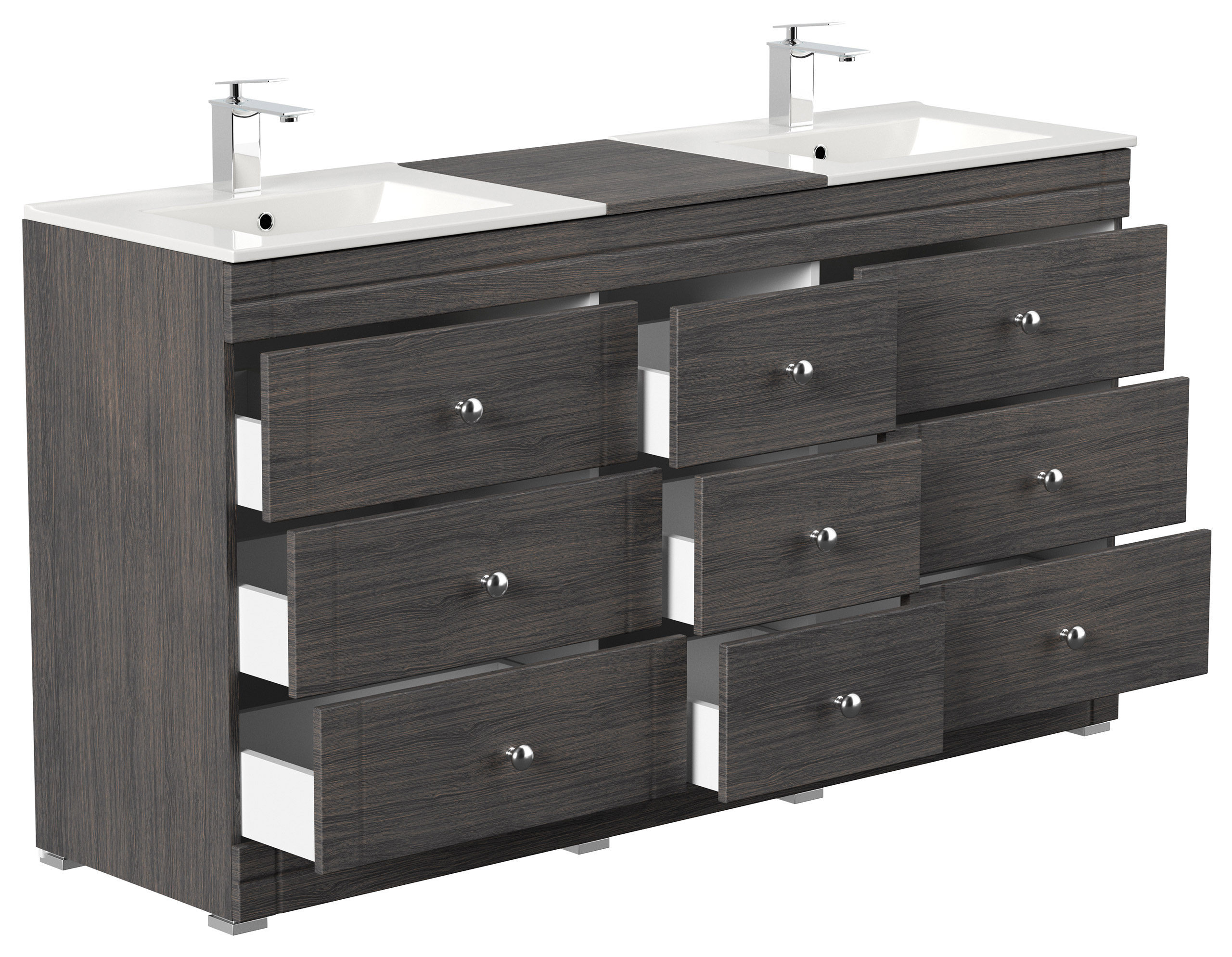 Badmöbel inkl. Waschbecken und Füßen (B/H/T) 160,9/88,6/46,9 cm,Waschtischunterschrank ohne Becken/Füße (B/H/T) 159,9/85/45,6 cm,