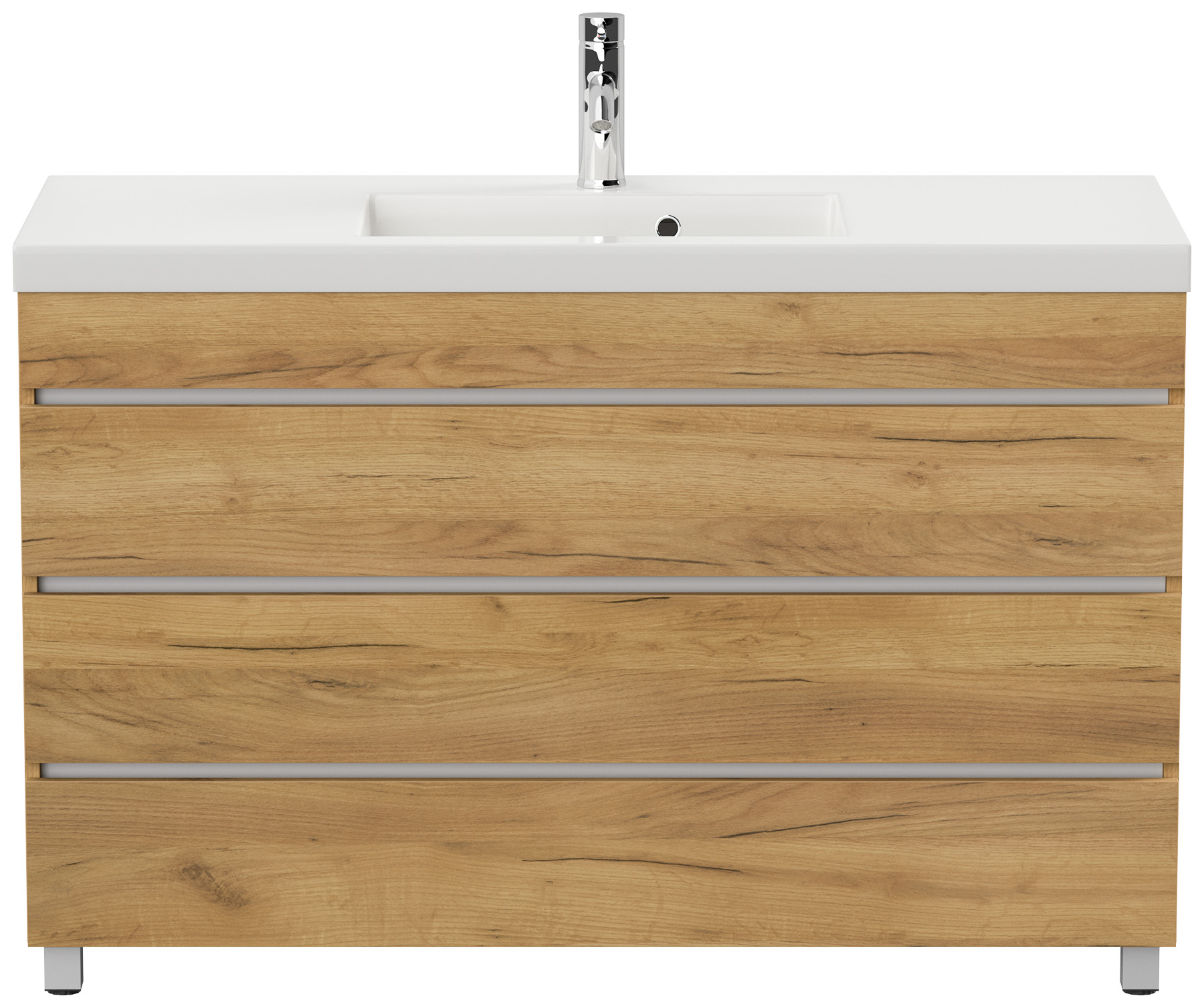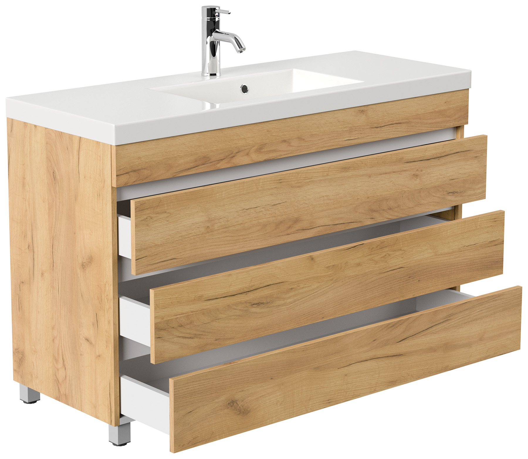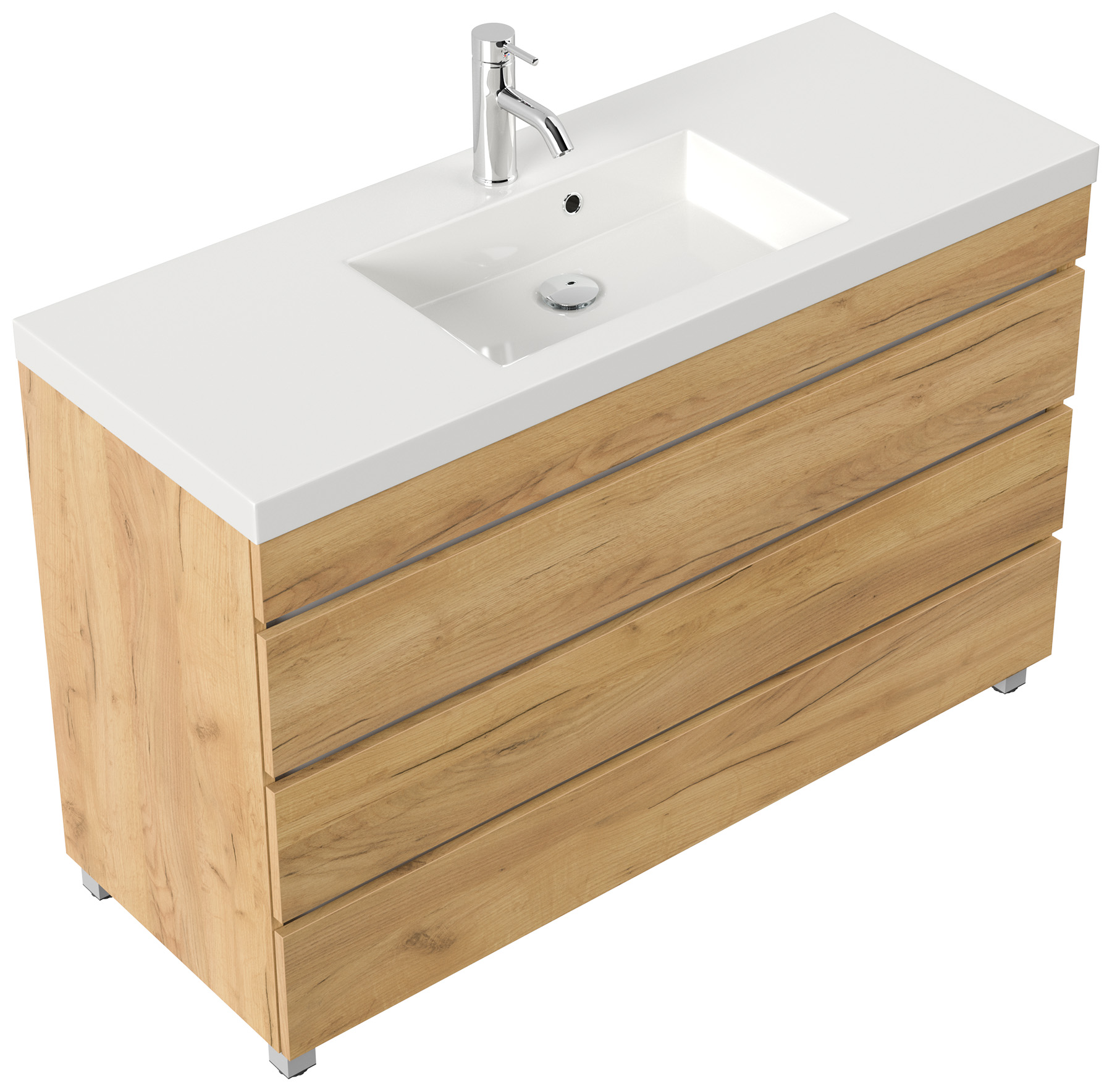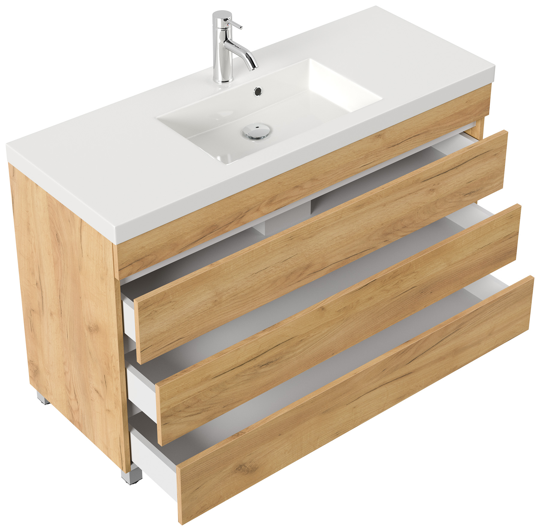 Stand Badmöbel GENEVA 120 SoftClose eiche gold mit 3 grifflosen Schubladen