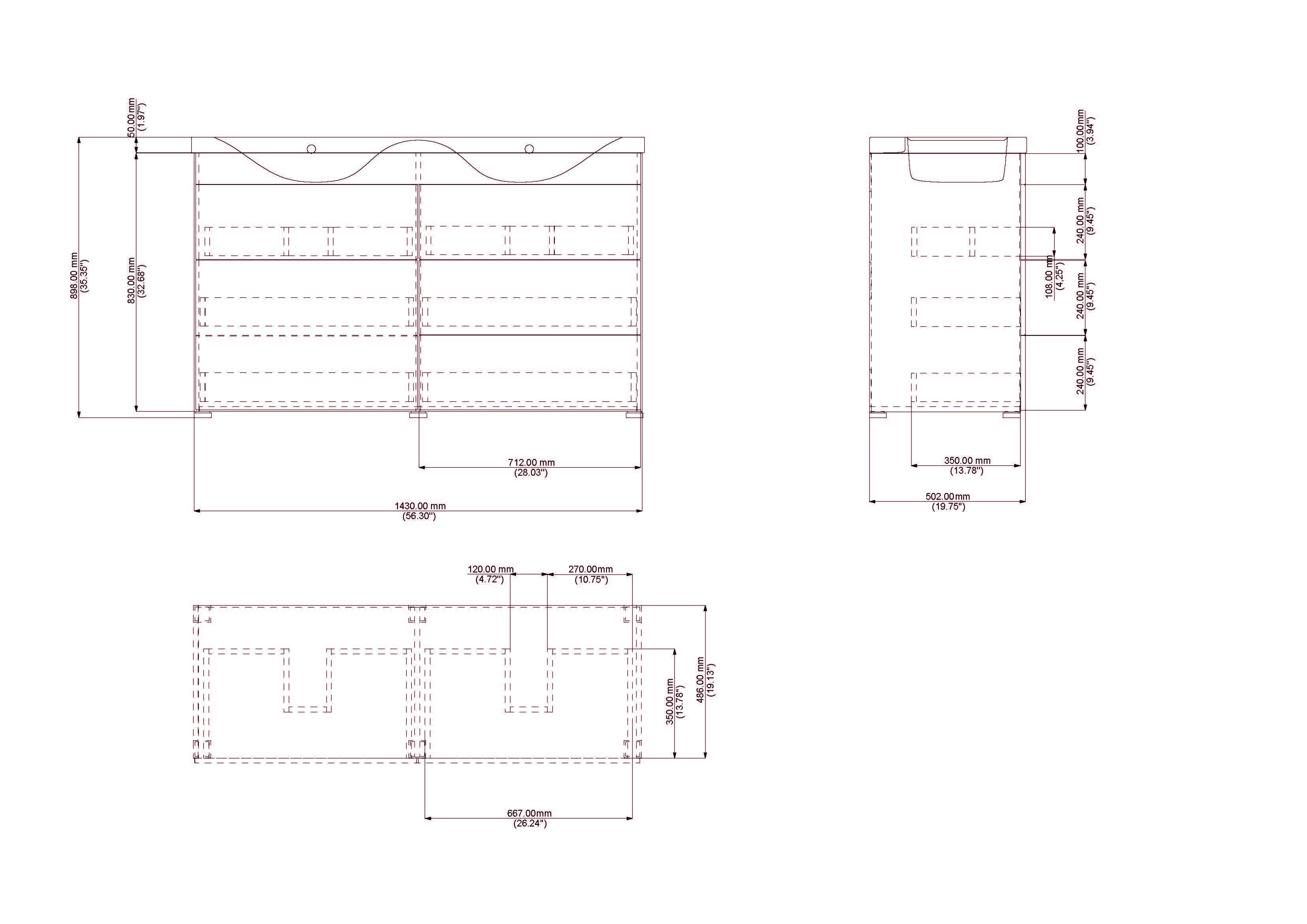 Badmöbel inkl. Waschbecken mit 6 Softclose Schubladen (B/H/T) 143,5/89,8/50,5 cm,Waschtischunterschrank ohne Becken/Füße (B/H/T) 143/83/50,2 cm,