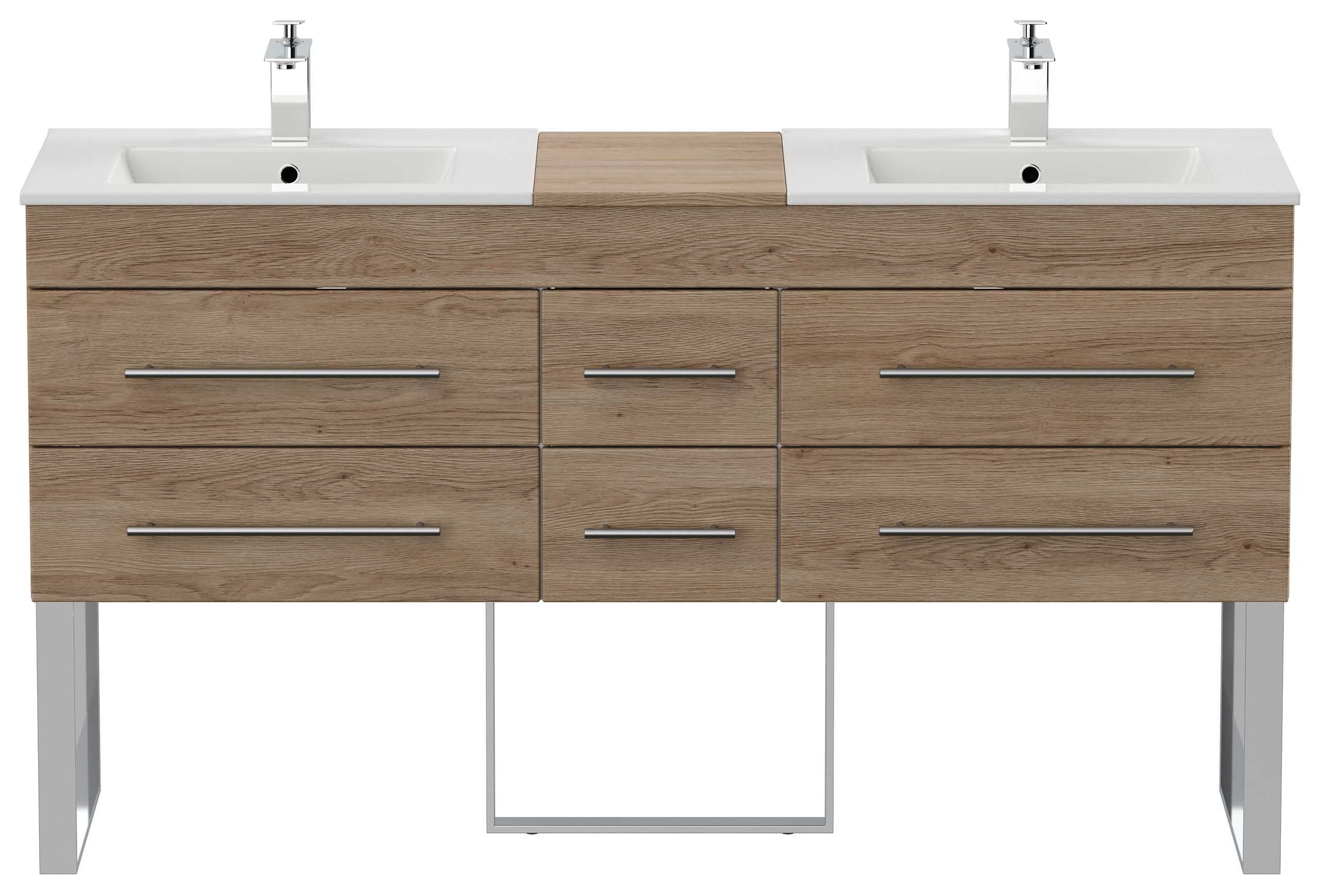 Stand Badmöbel inkl. Keramik-Waschbecken (B/H/T) 153/86/47 cm,Waschtischunterschrank ohne Becken u. ohne Standfüße (B/H/T) 150,2/49,6/46,5cm,