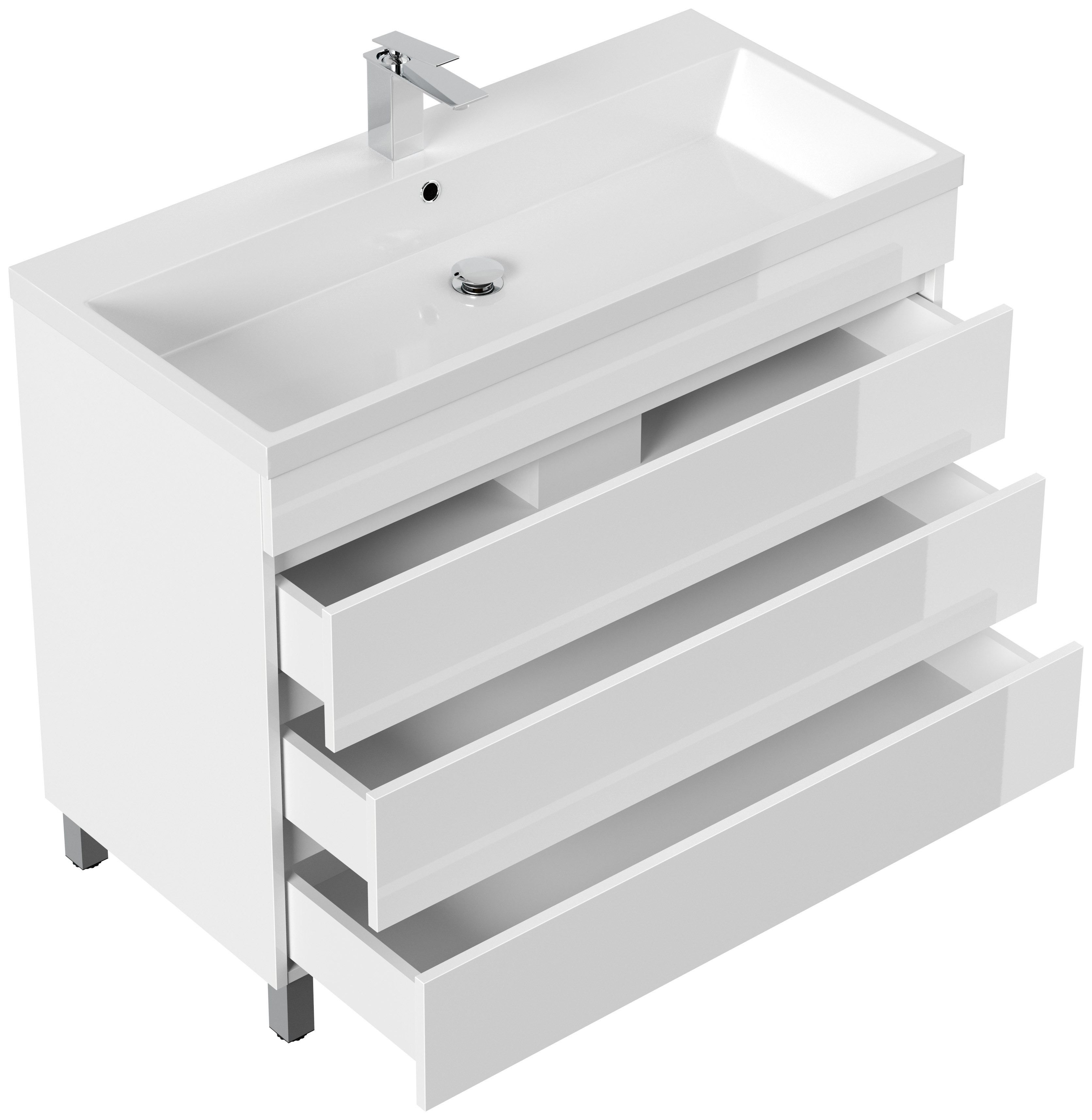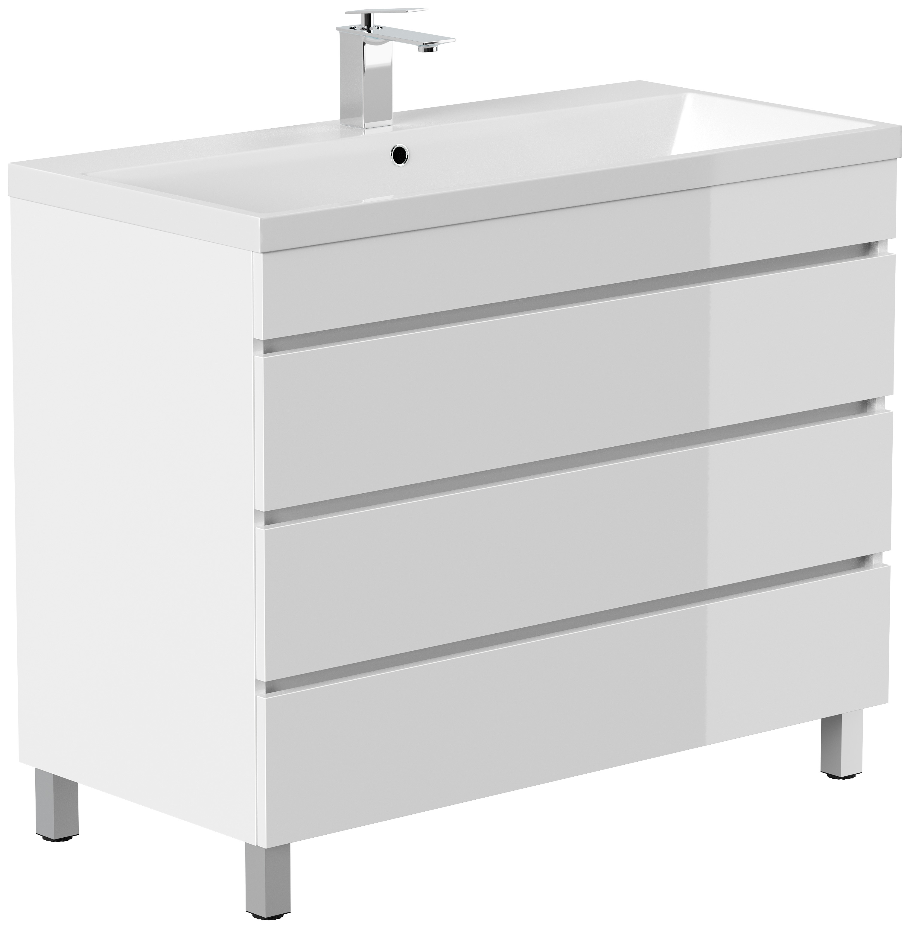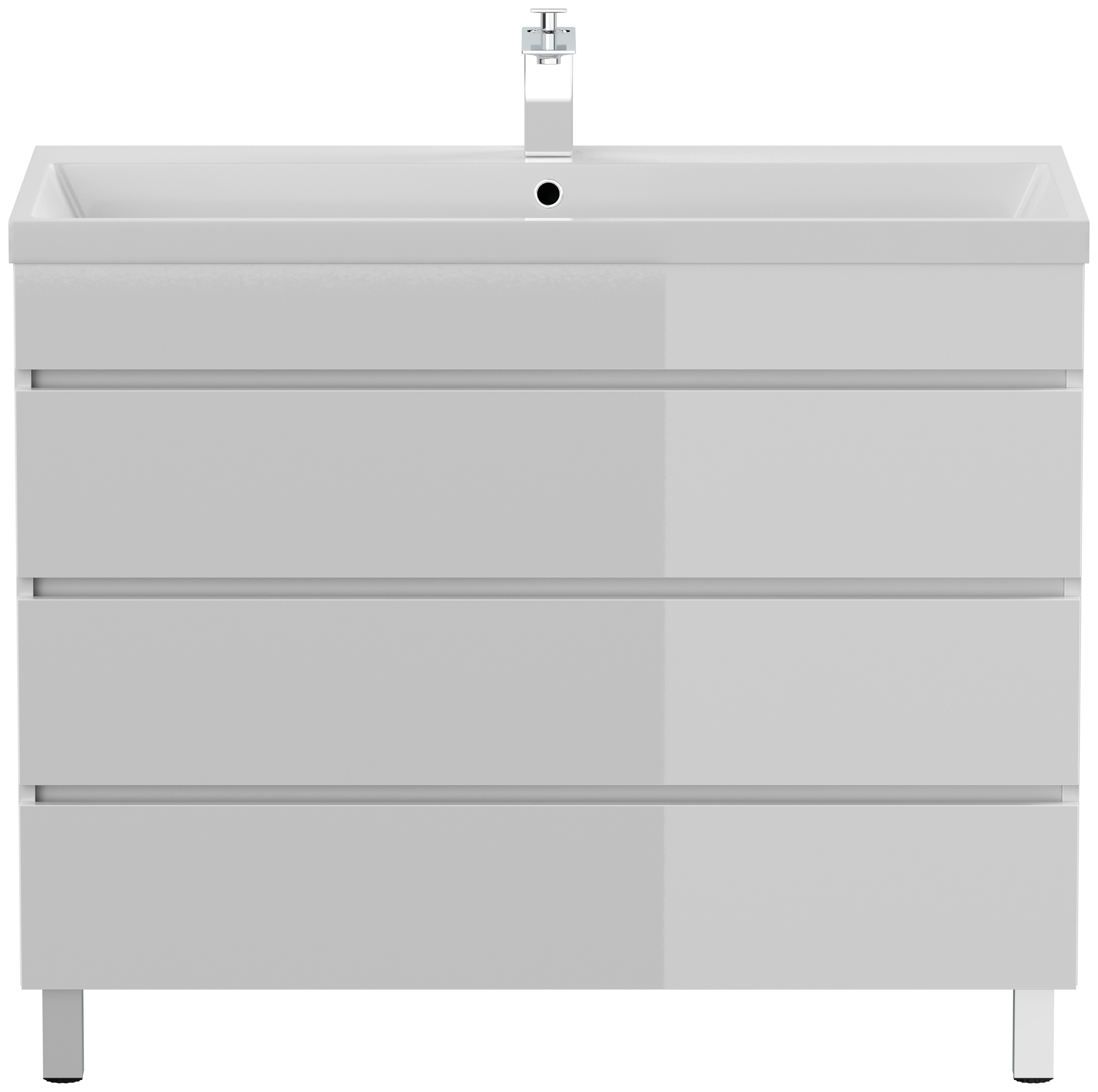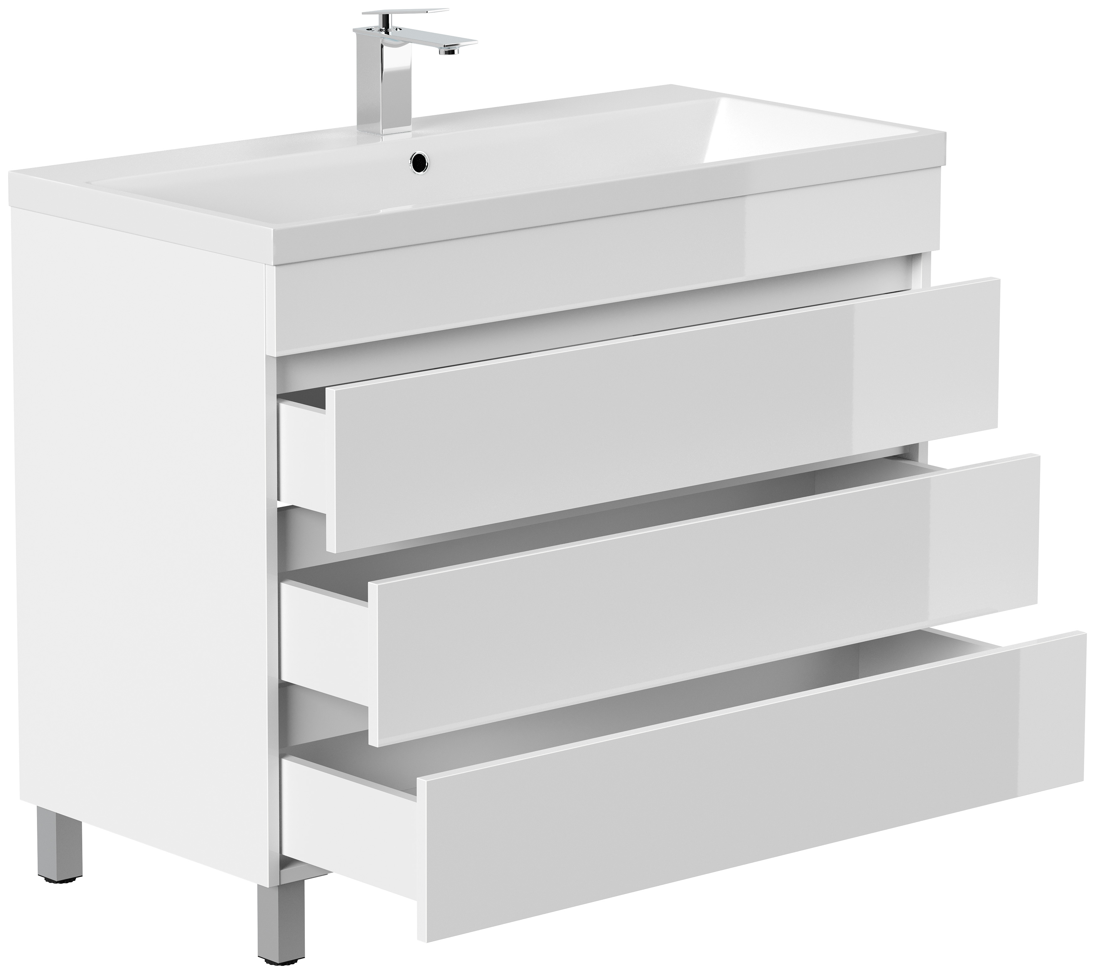 Stand Badmöbel Via 100 SoftClose weiss hochglanz mit drei grifflosen Schubladen