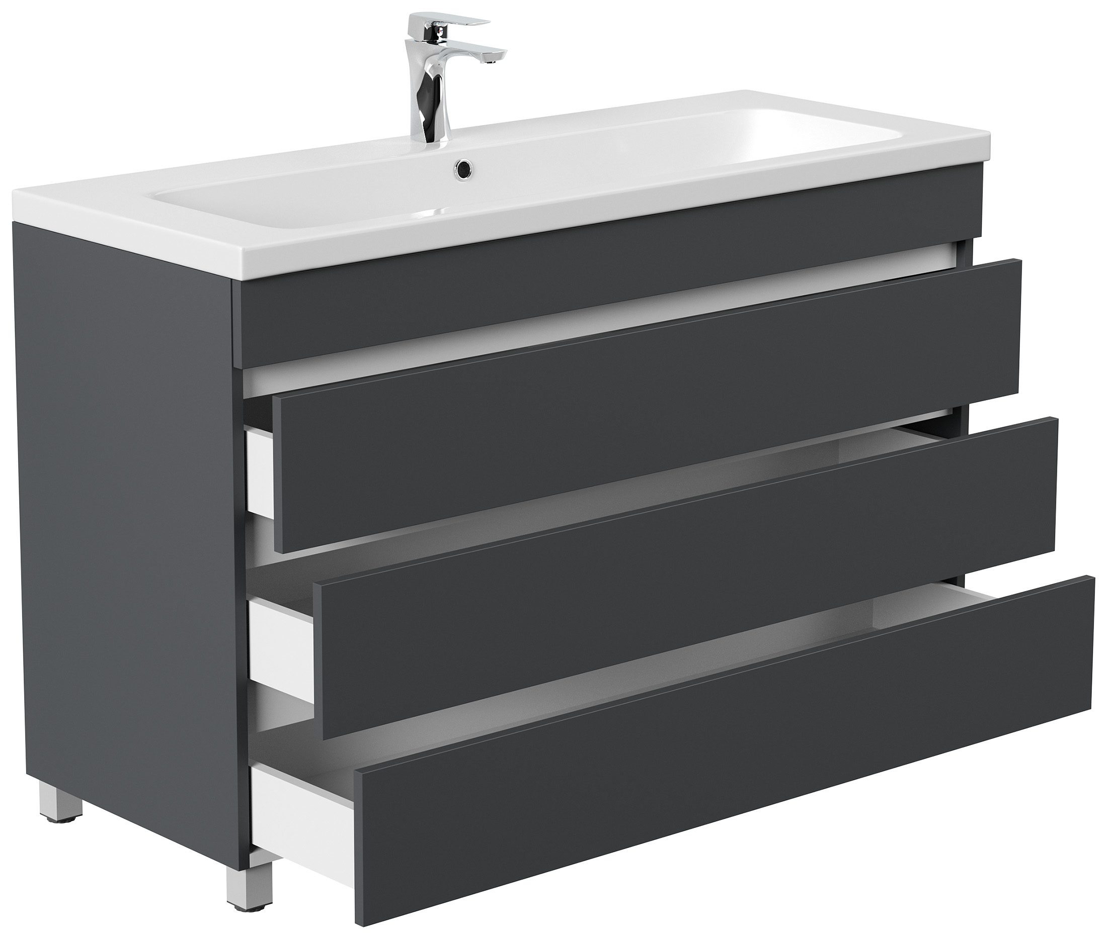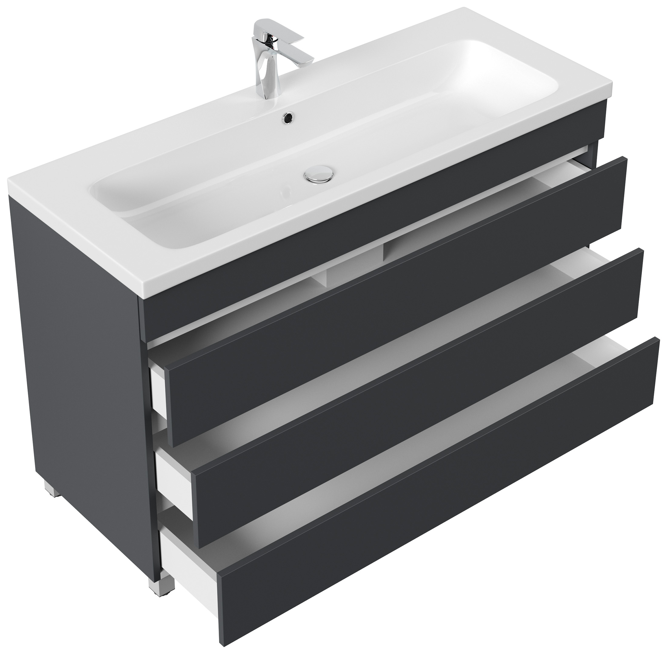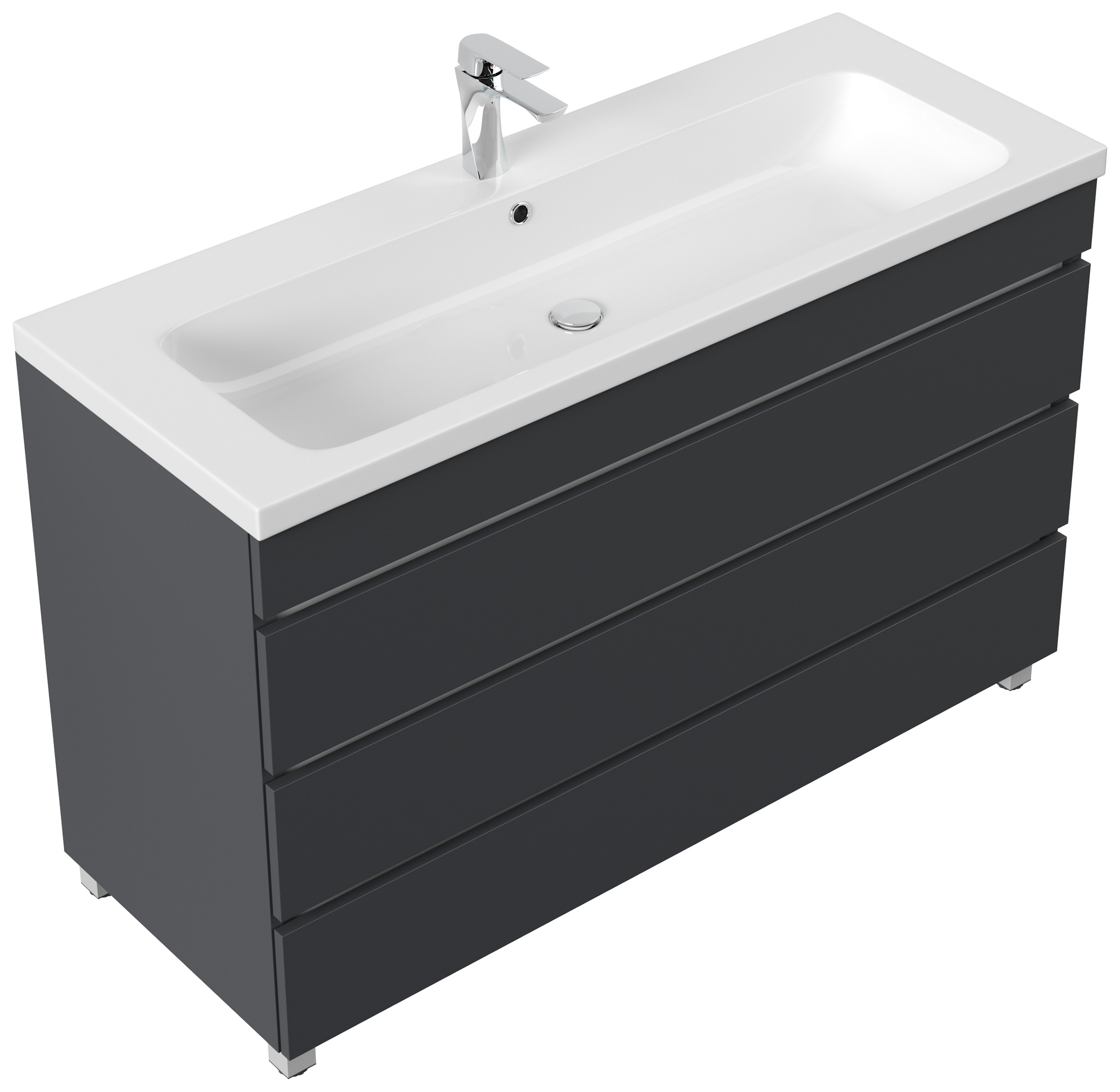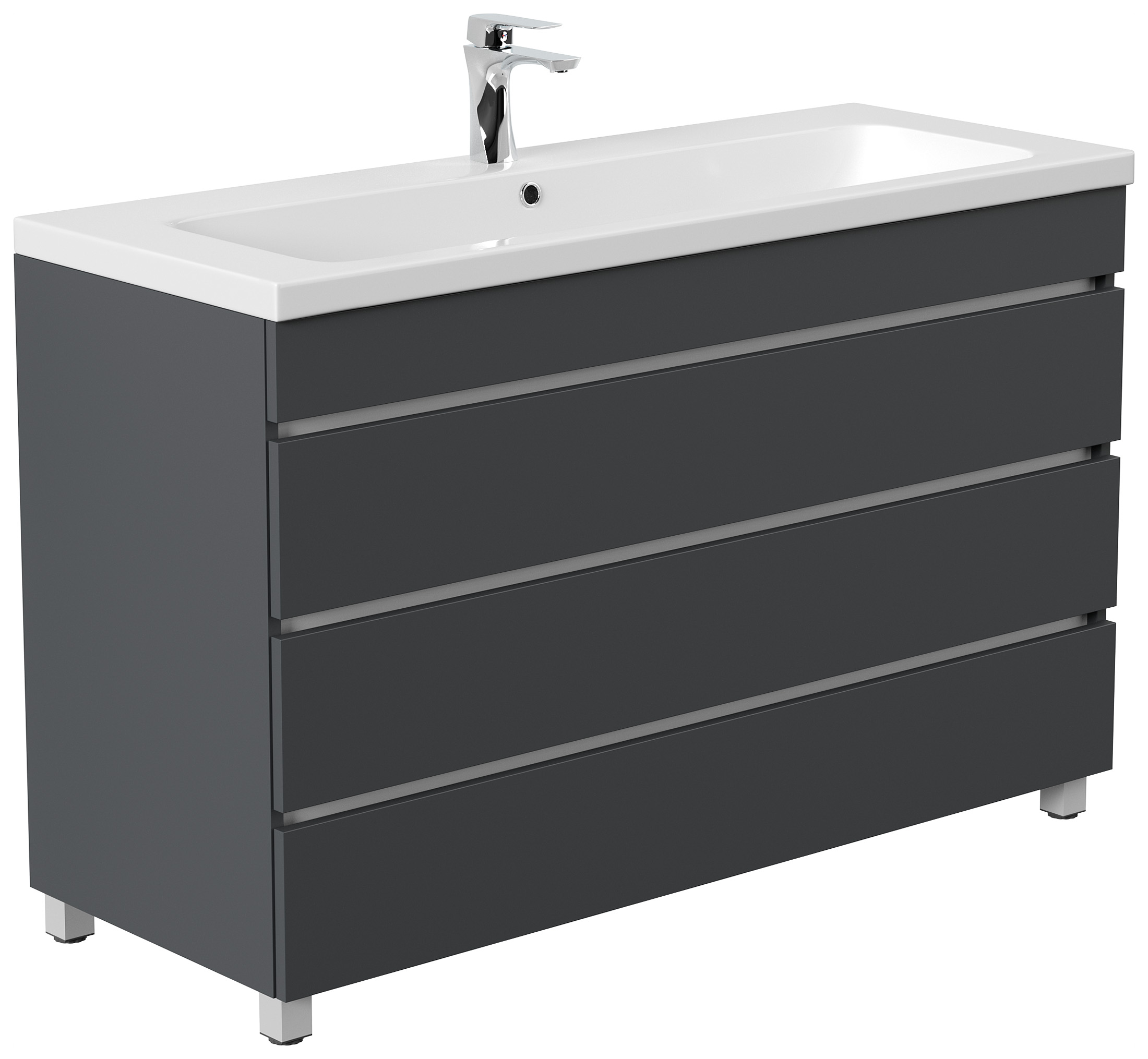 Stand Badmöbel Via 120 SoftClose grafit mit 3 grifflosen Schubladen