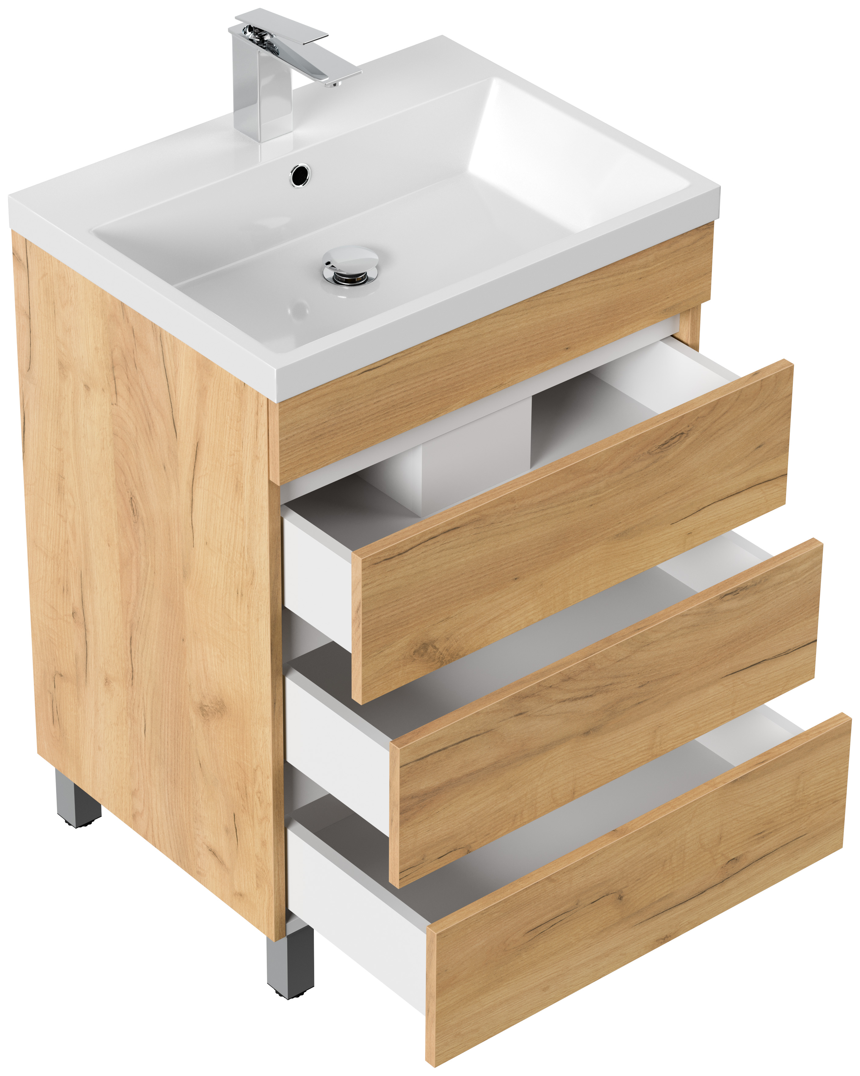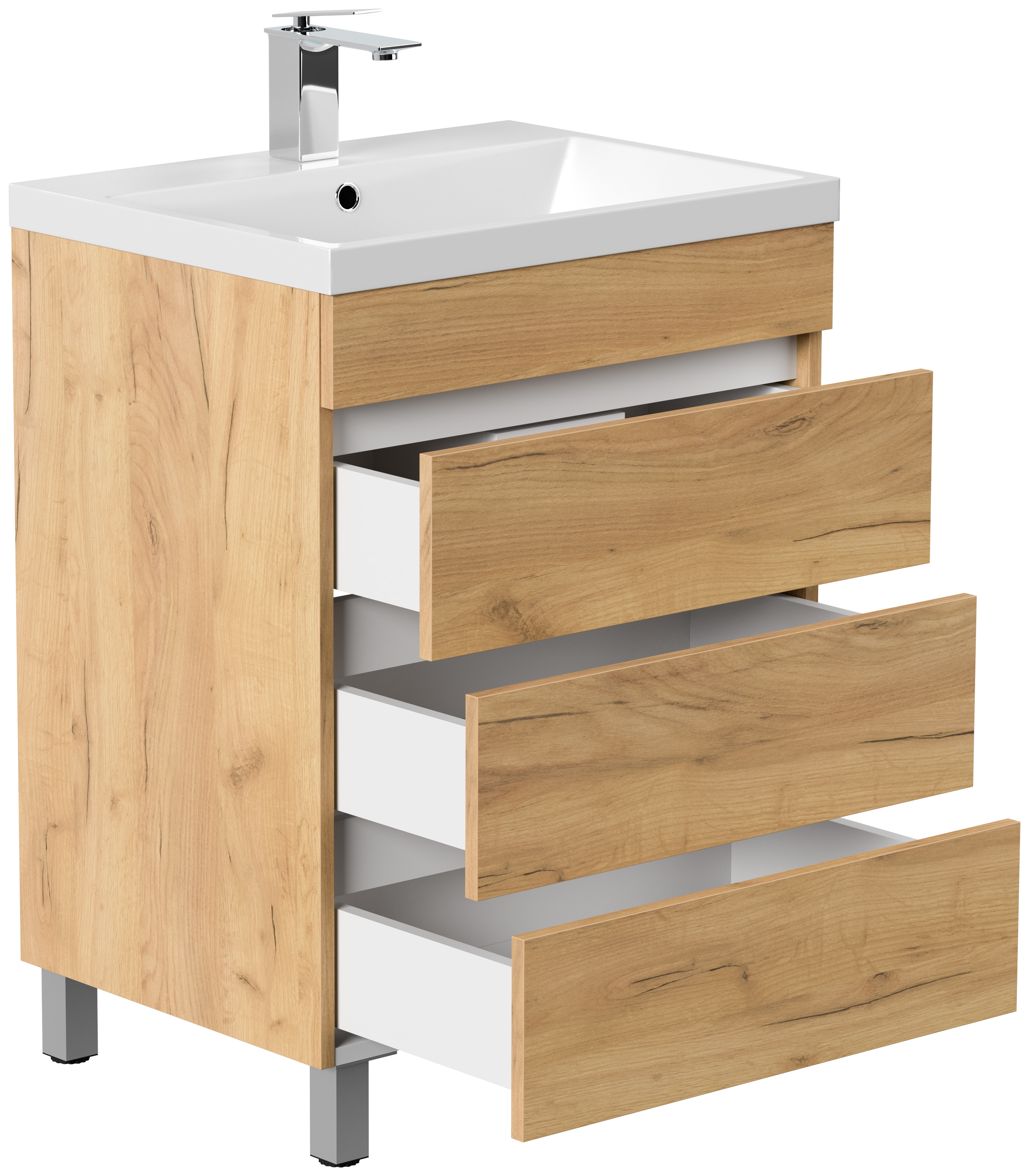 Stand Badmöbel Via 60 SoftClose eiche gold mit drei grifflosen Schubladen