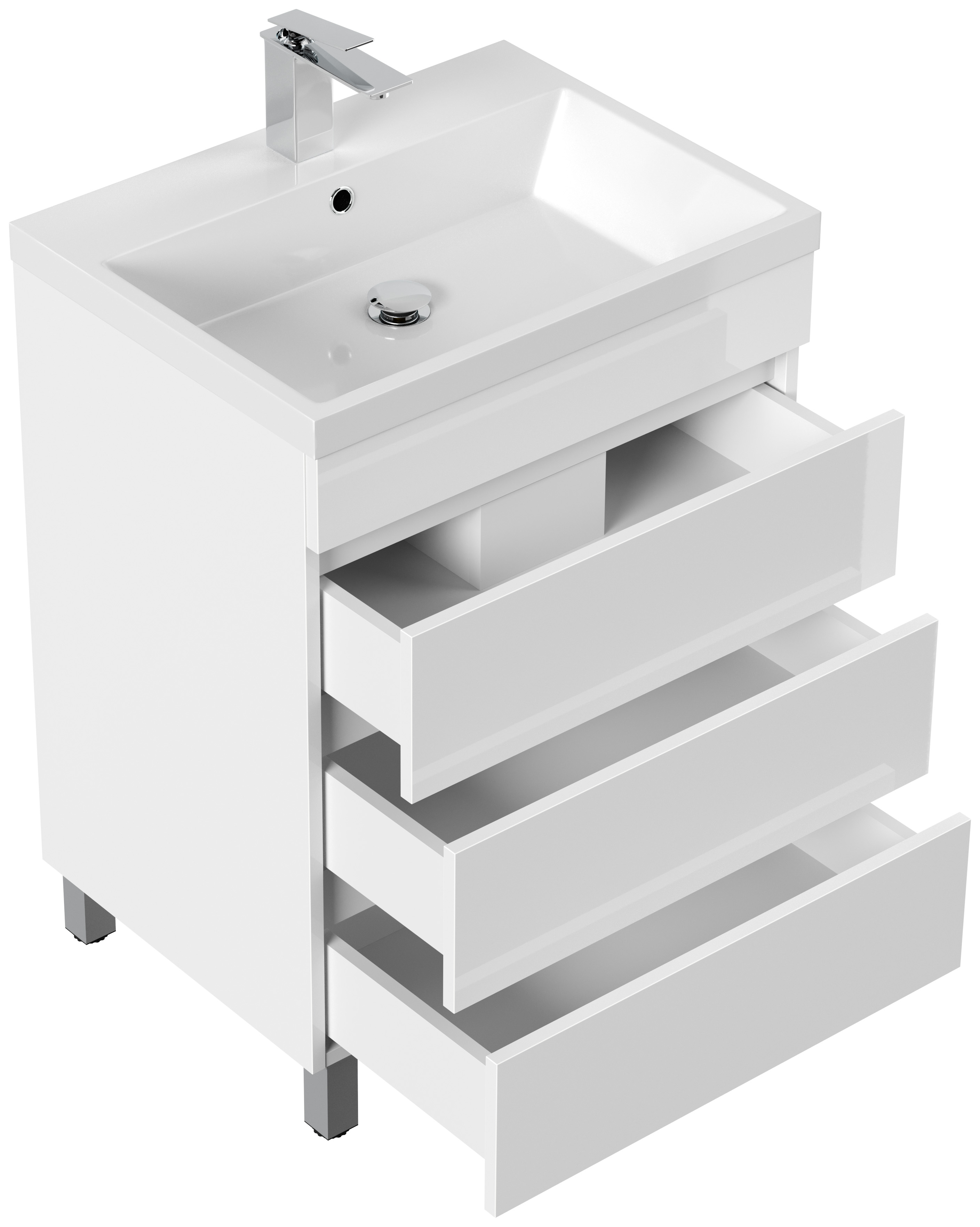 Stand Badmöbel Via 60 SoftClose weiss hochglanz mit drei grifflosen Schubladen