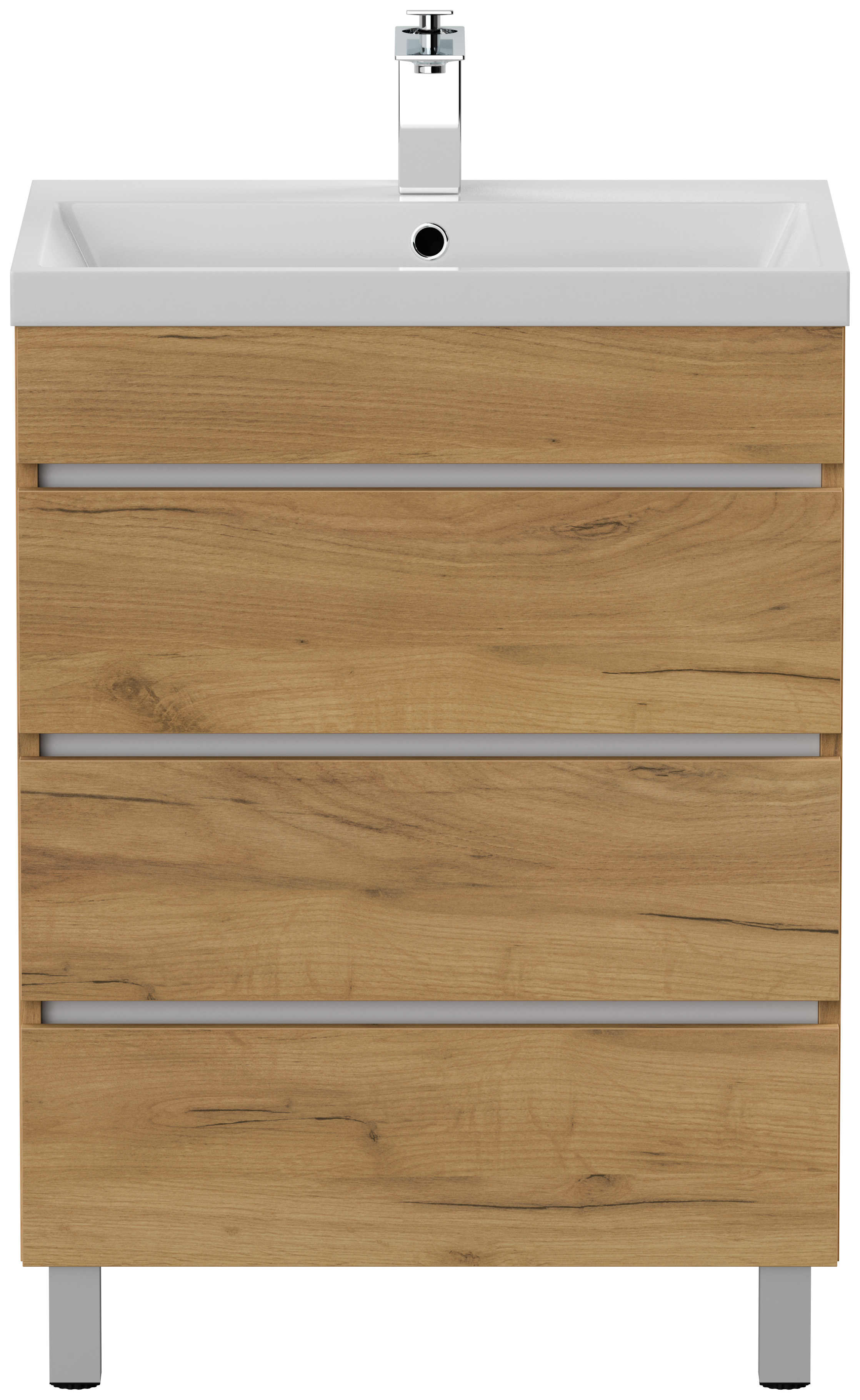 Stand Badmöbel Via 70 SoftClose eiche gold mit drei grifflosen Schubladen