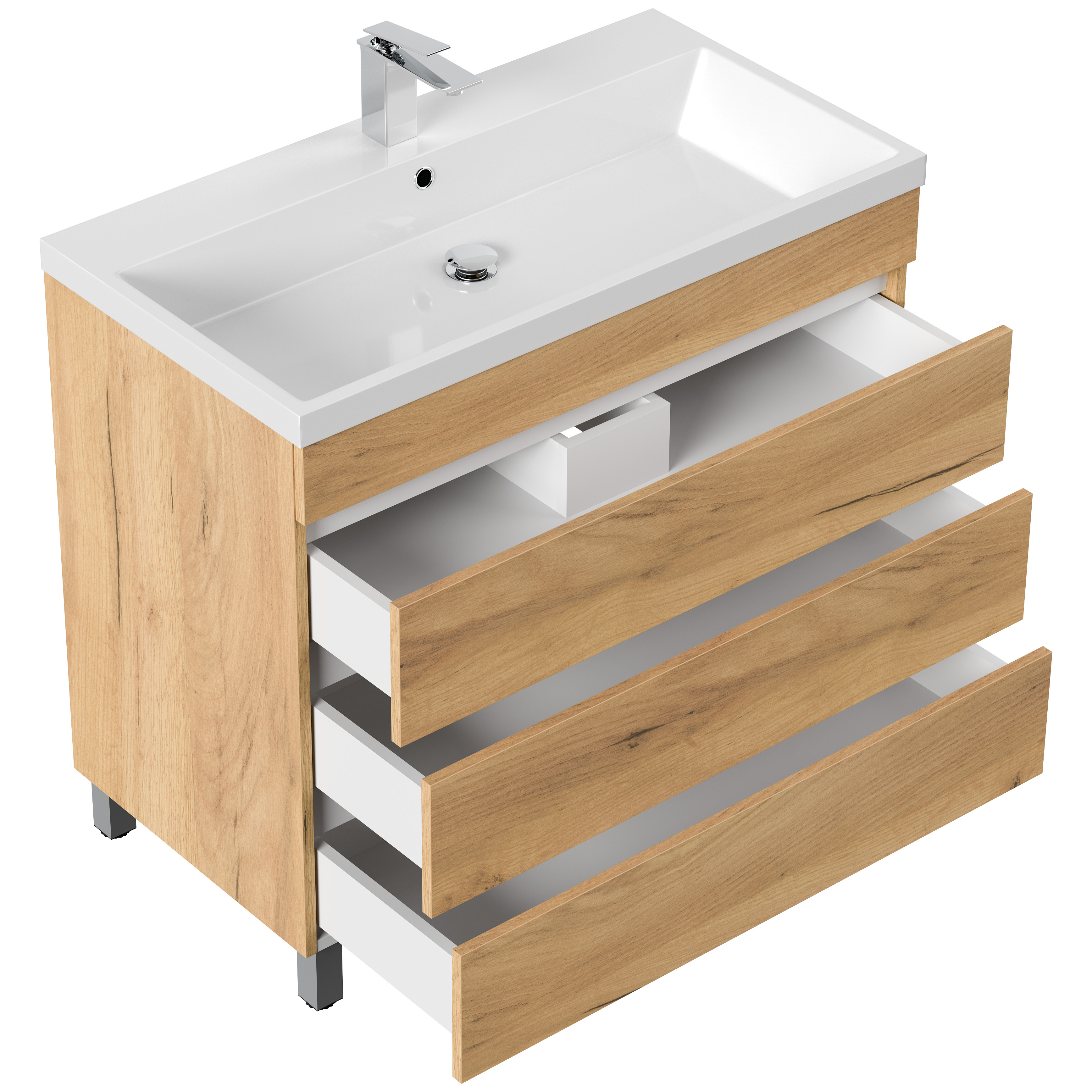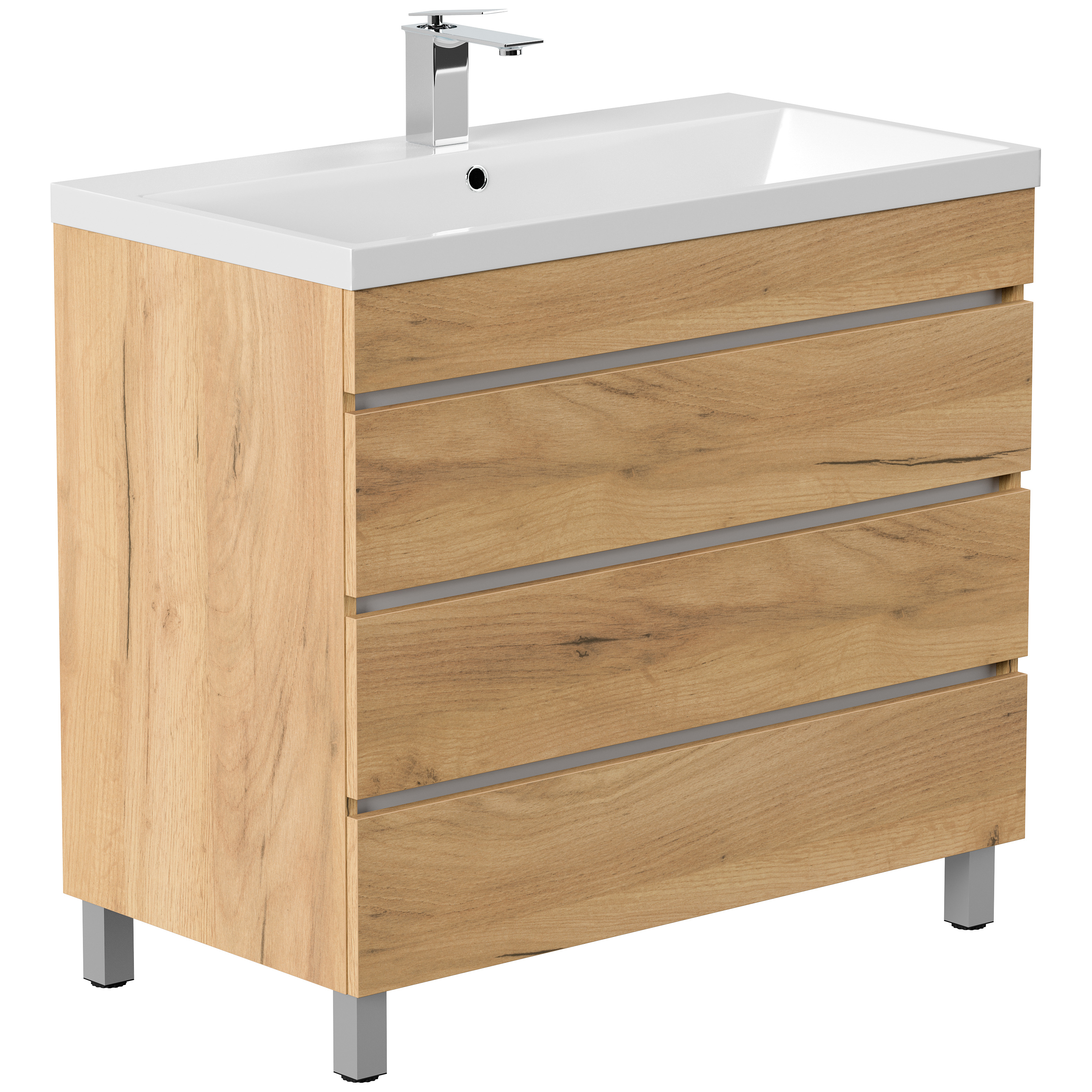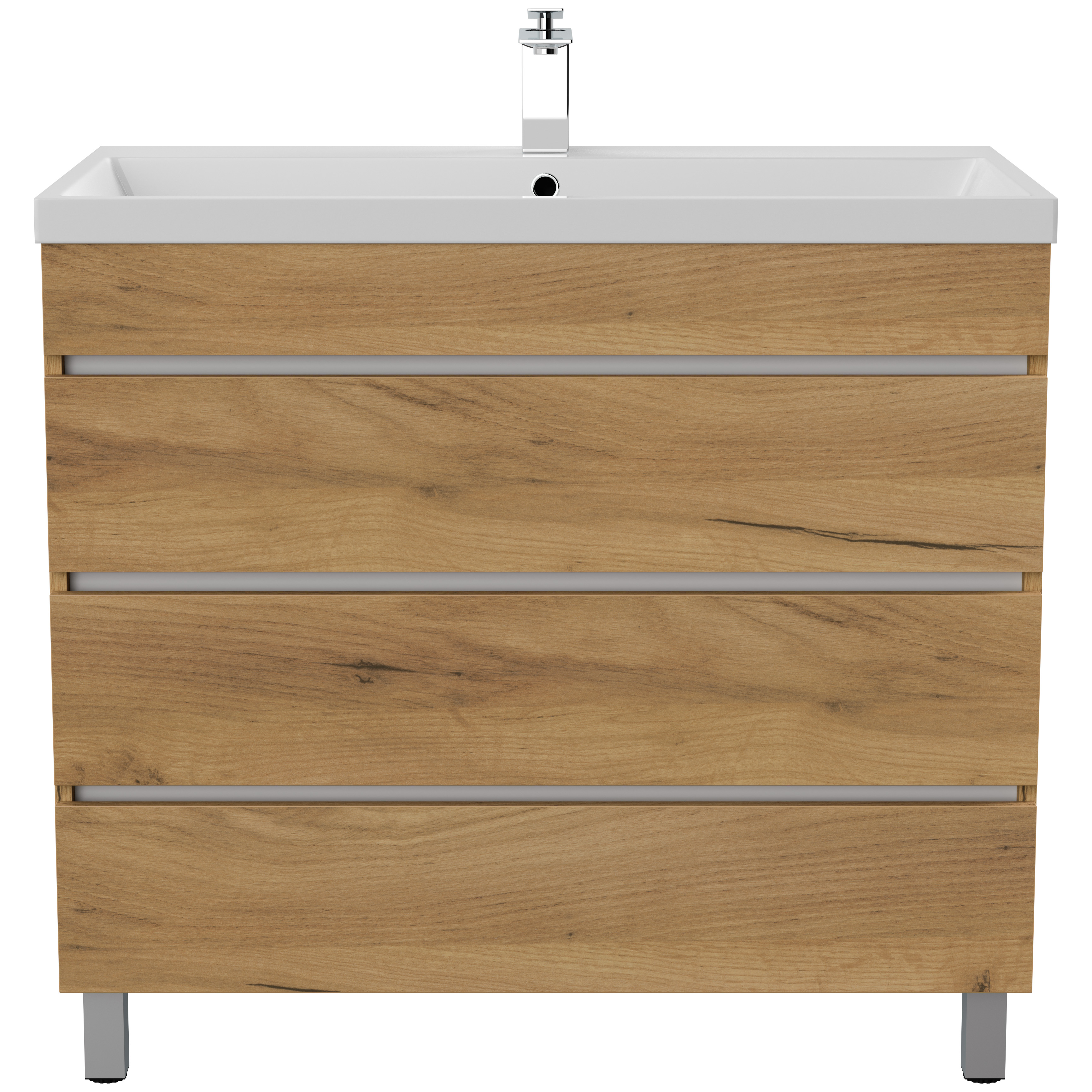 Stand Badmöbel Via 90 SoftClose eiche gold mit drei grifflosen Schubladen