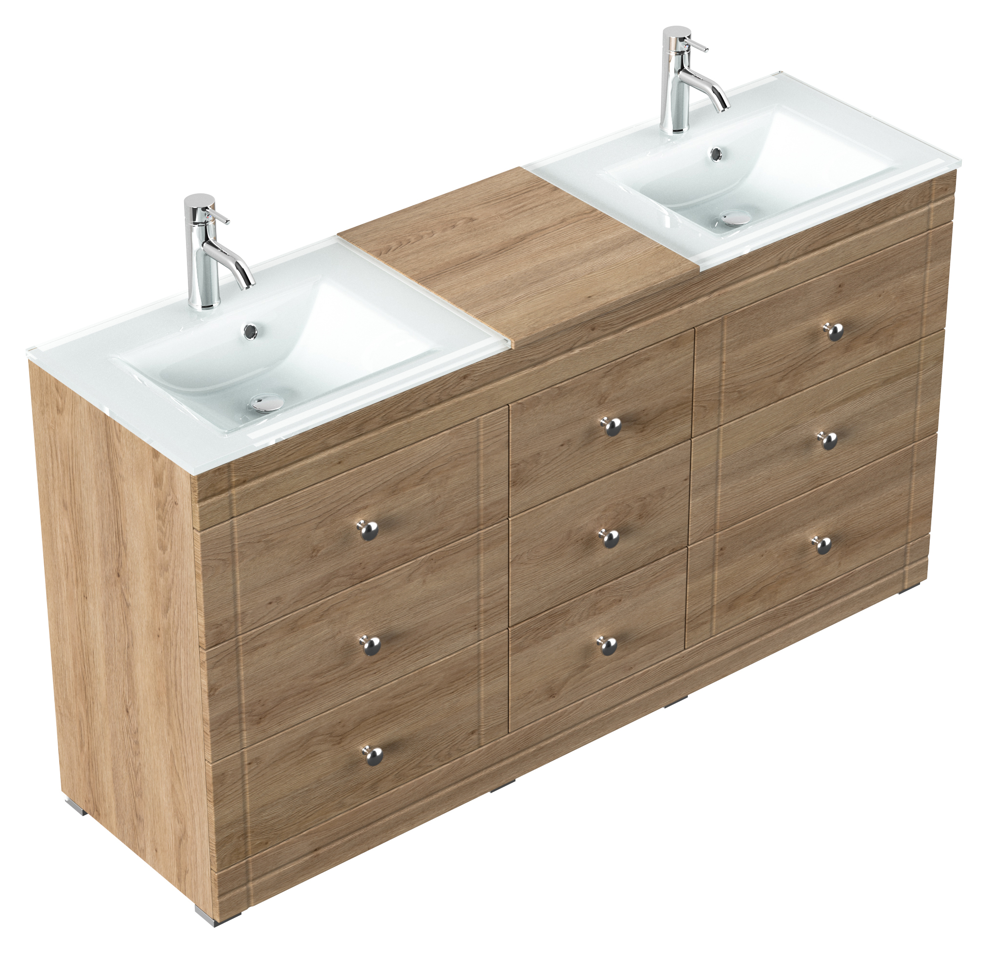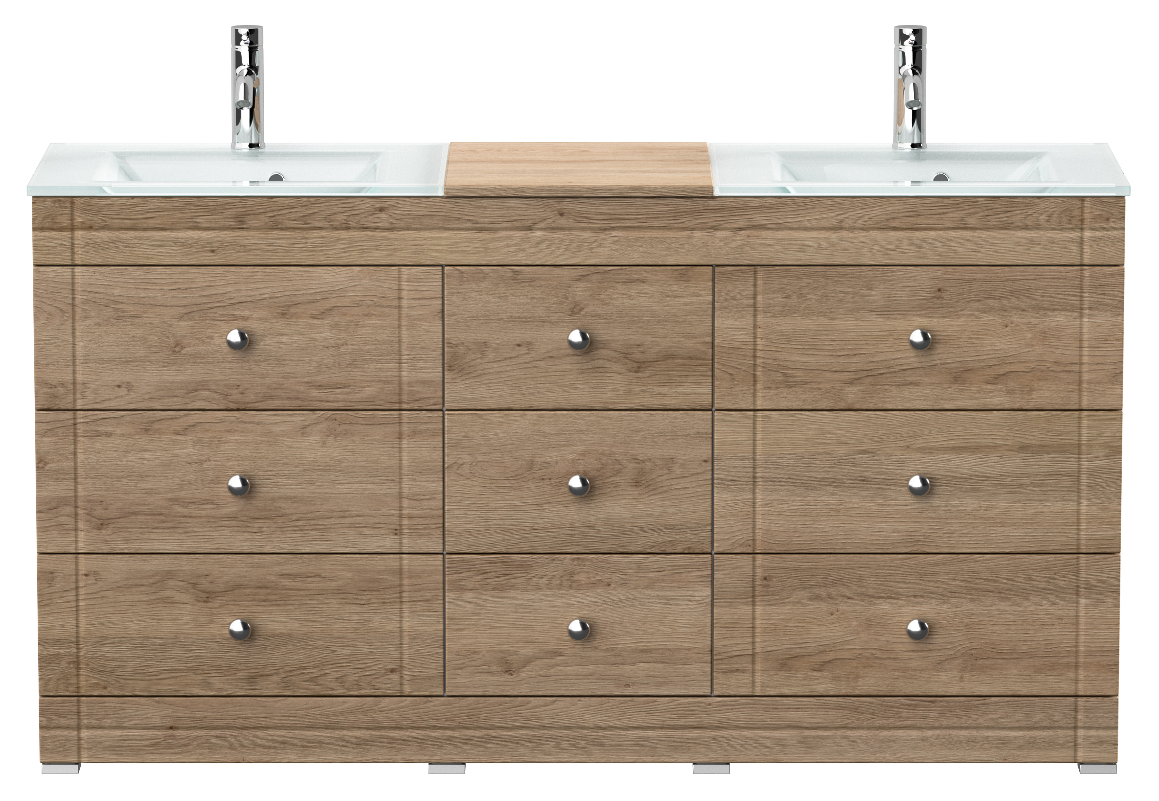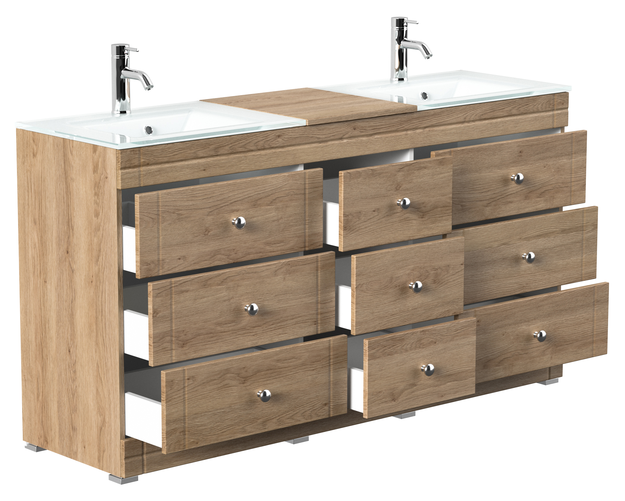 Stand Doppel Badmöbel Vitro Klassik inkl. Glasbecken SoftClose eiche hell