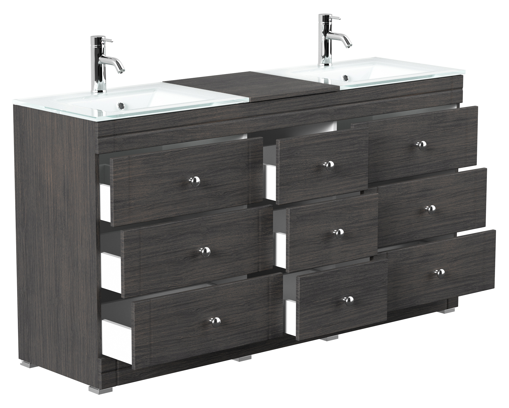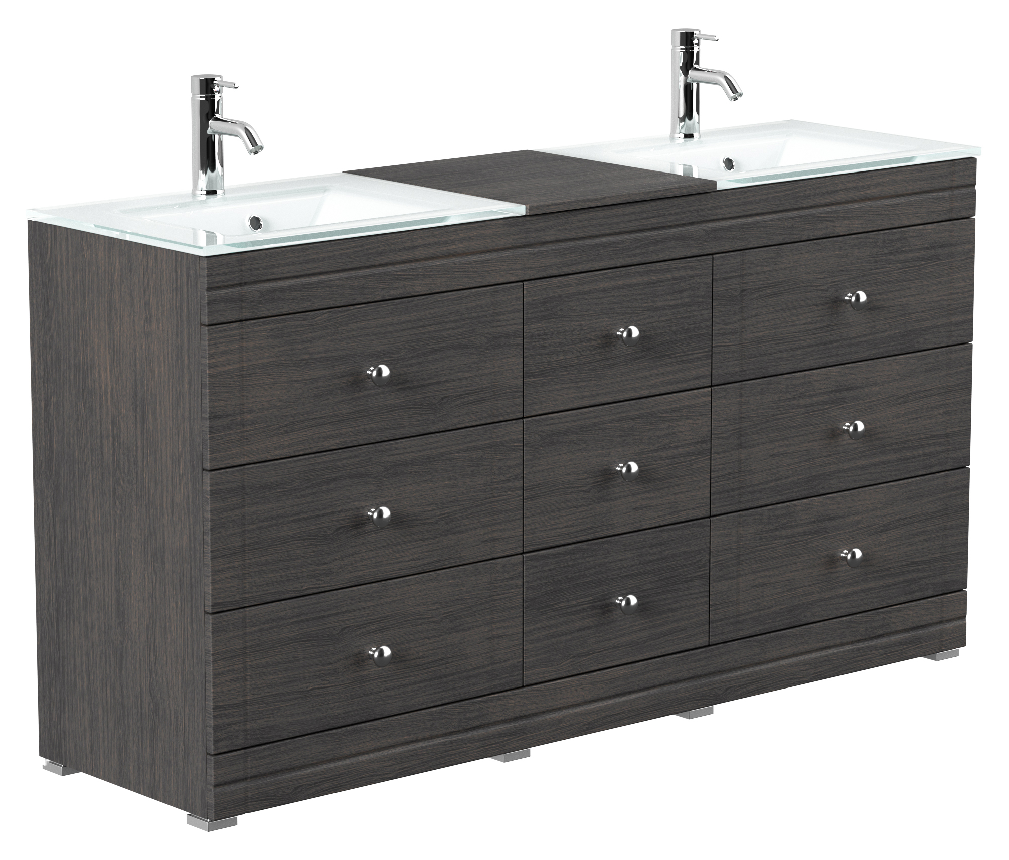 Stand Doppel Badmöbel Vitro Klassik inkl. Glasbecken anthrazit gemasert