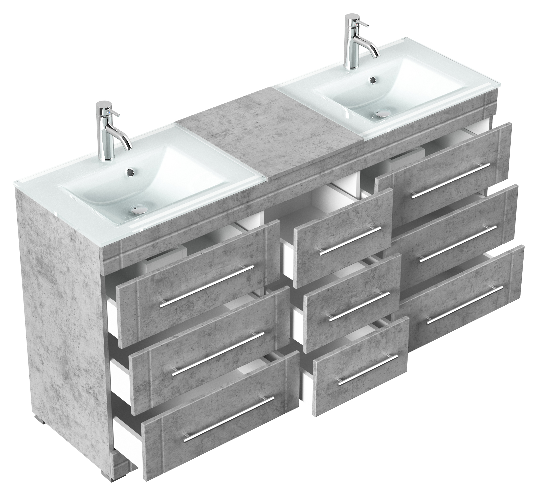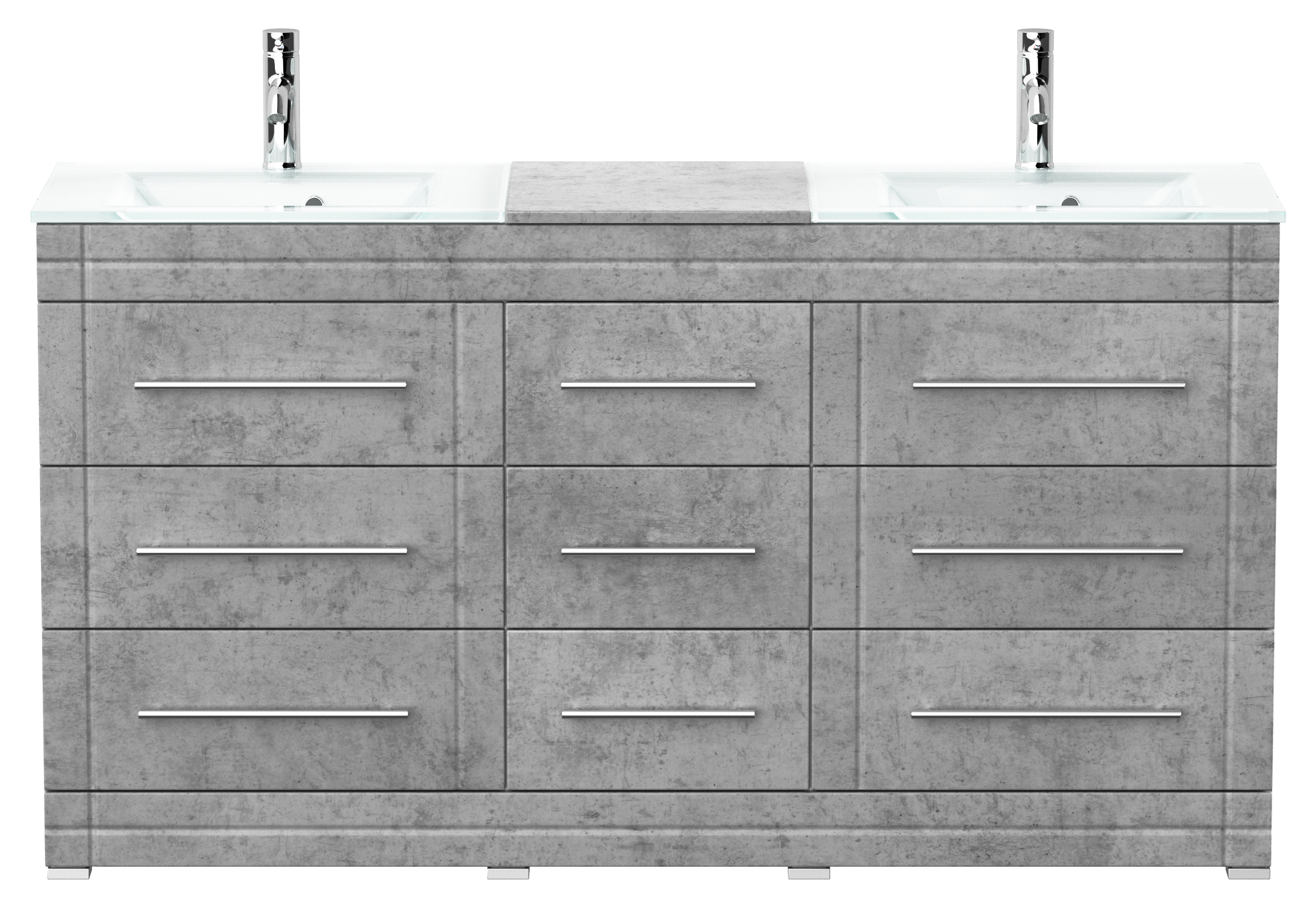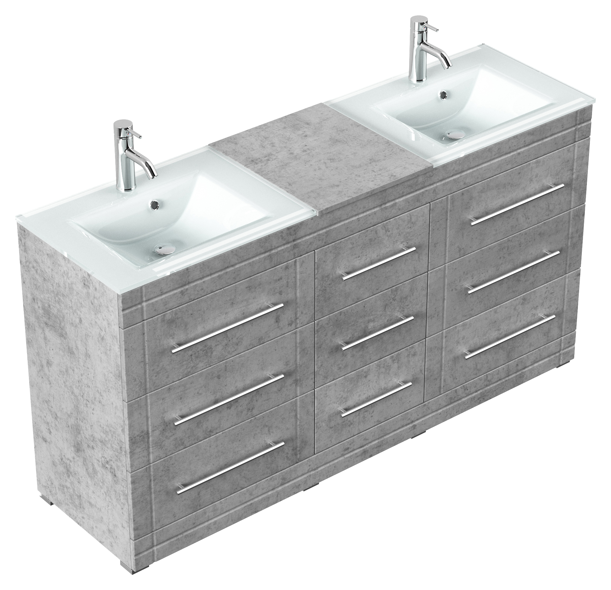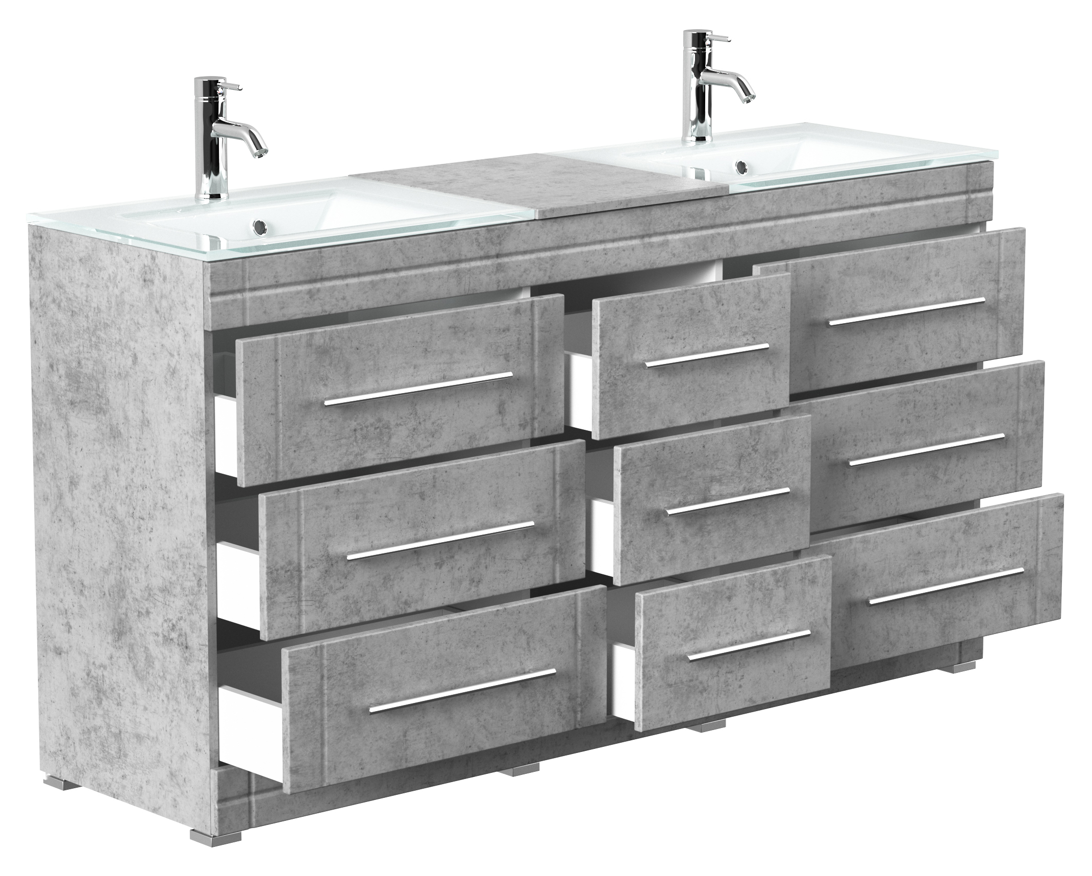 Stand Doppel Badmöbel Vitro Modern inkl. Glasbecken SoftClose beton