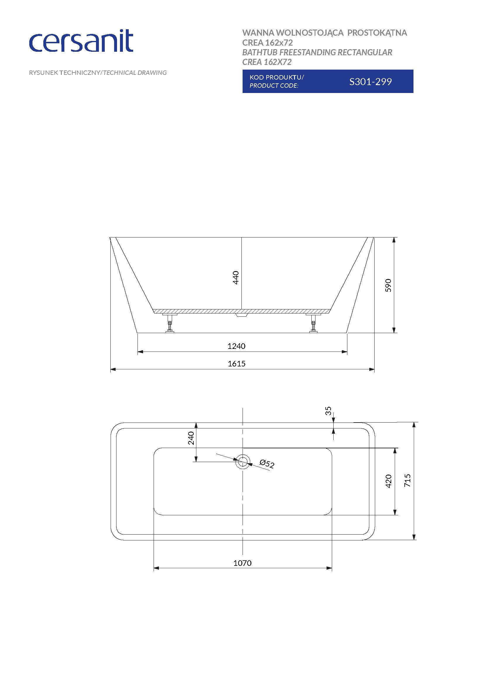 Mit einer Tiefe von 44 cm bietet die CREA 162 optimalen Badekomfort und ausreichend Raum für ein wohltuendes, tiefes Eintauchen.