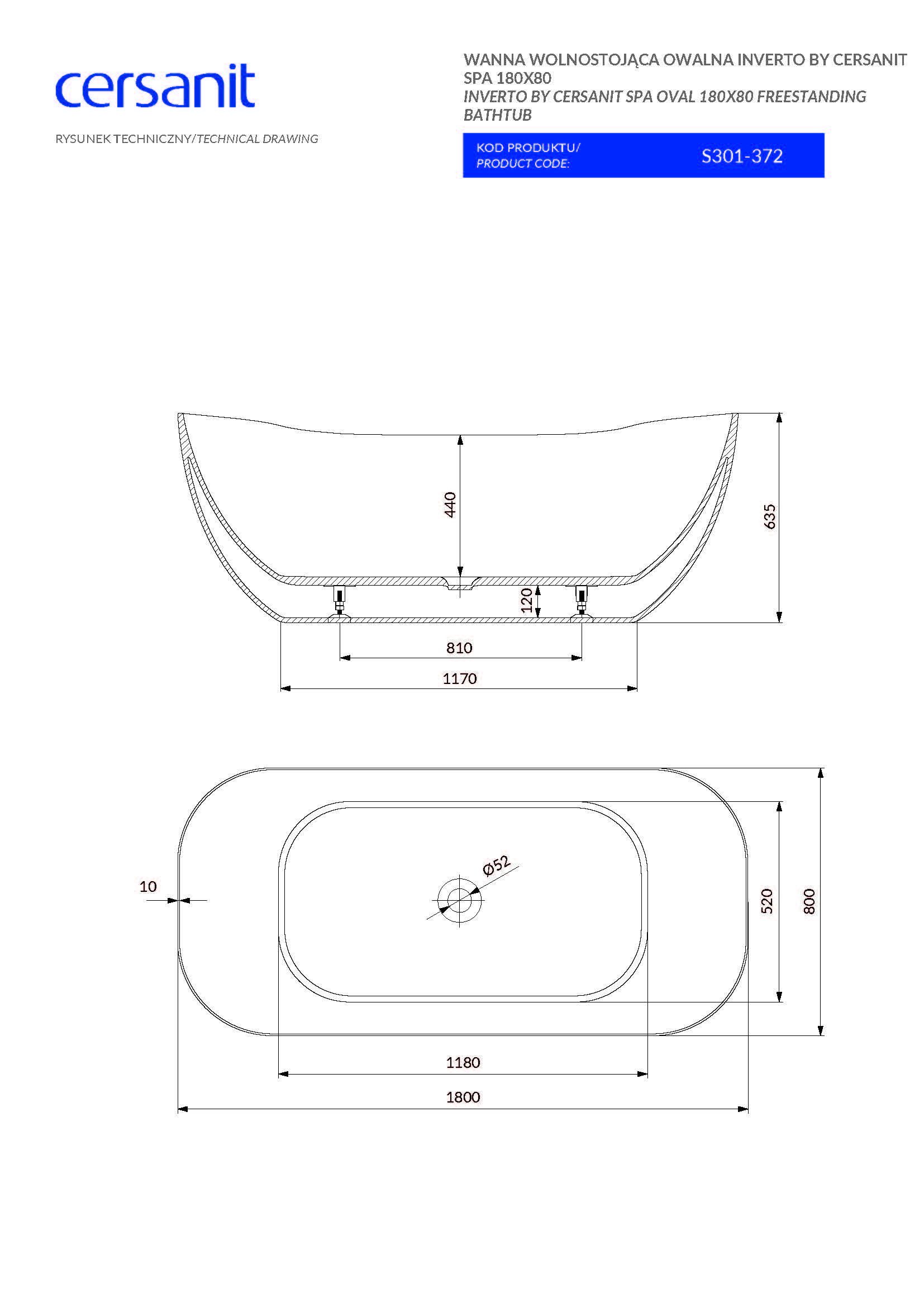 Details zur Badewanne Inverto 180- Form: Oval