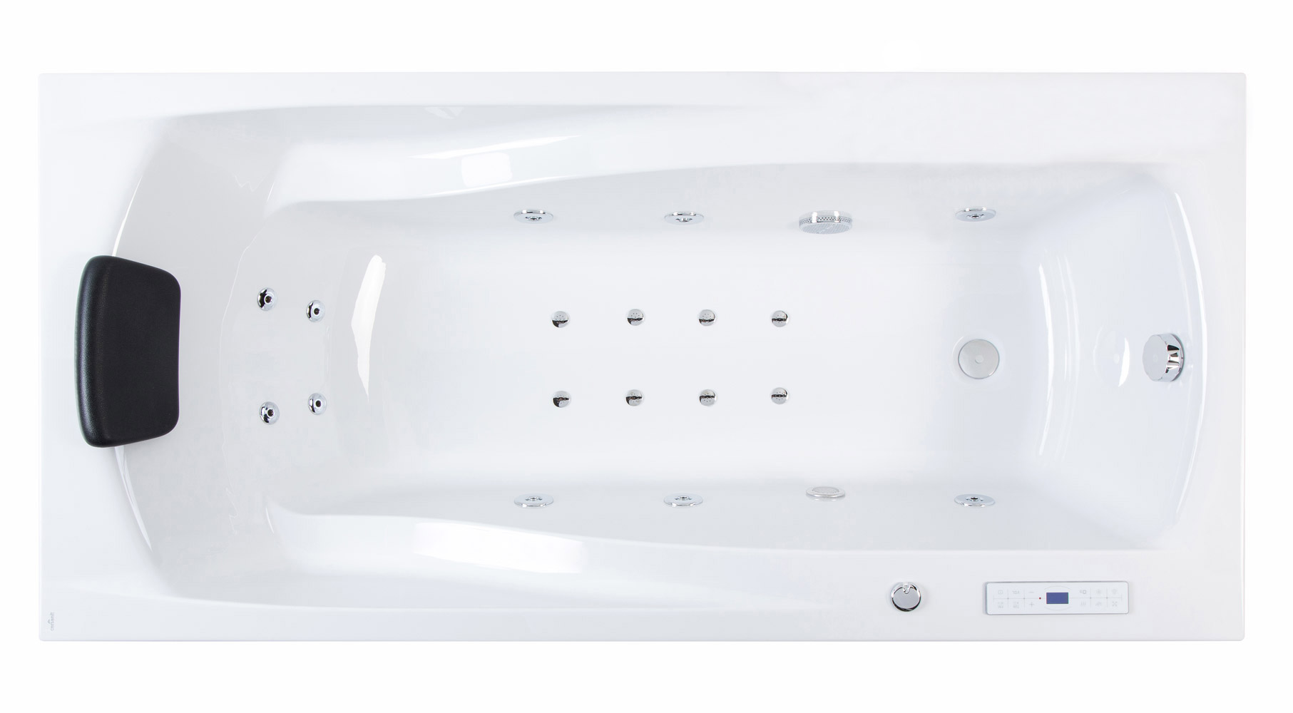 Vorteile: Dezente Strahler seitlich. Automatischer Farbwechsel mit gleichmäßiger Wasserbeleuchtung. Intensive Farben leuchten unter Wasser. Entspanntes Baden mit Chromotherapie.Massagefunktion: Düsen-Ausstattung