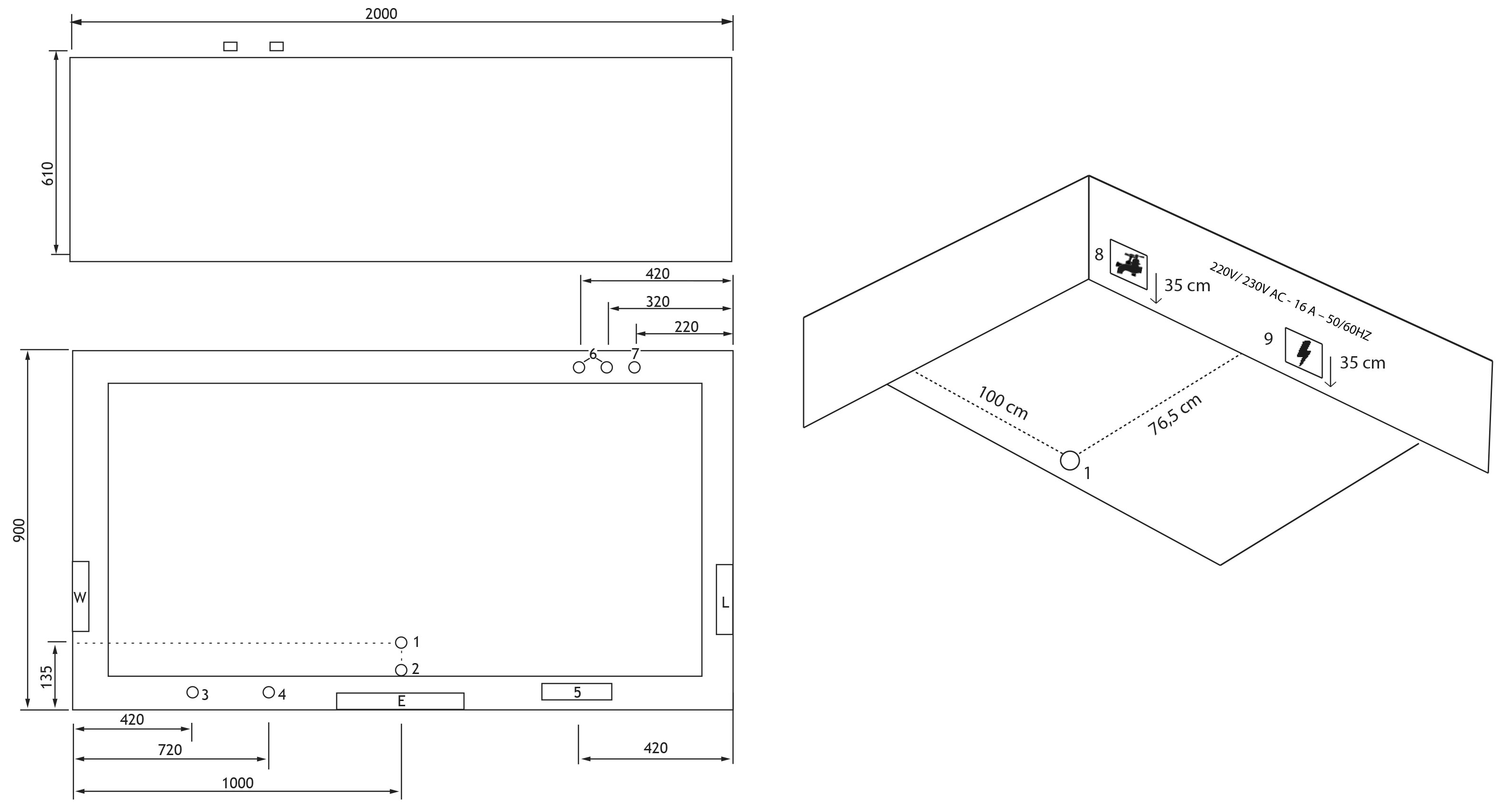 Strom: 220V ⁄ 230V - 16 A - 50HZ